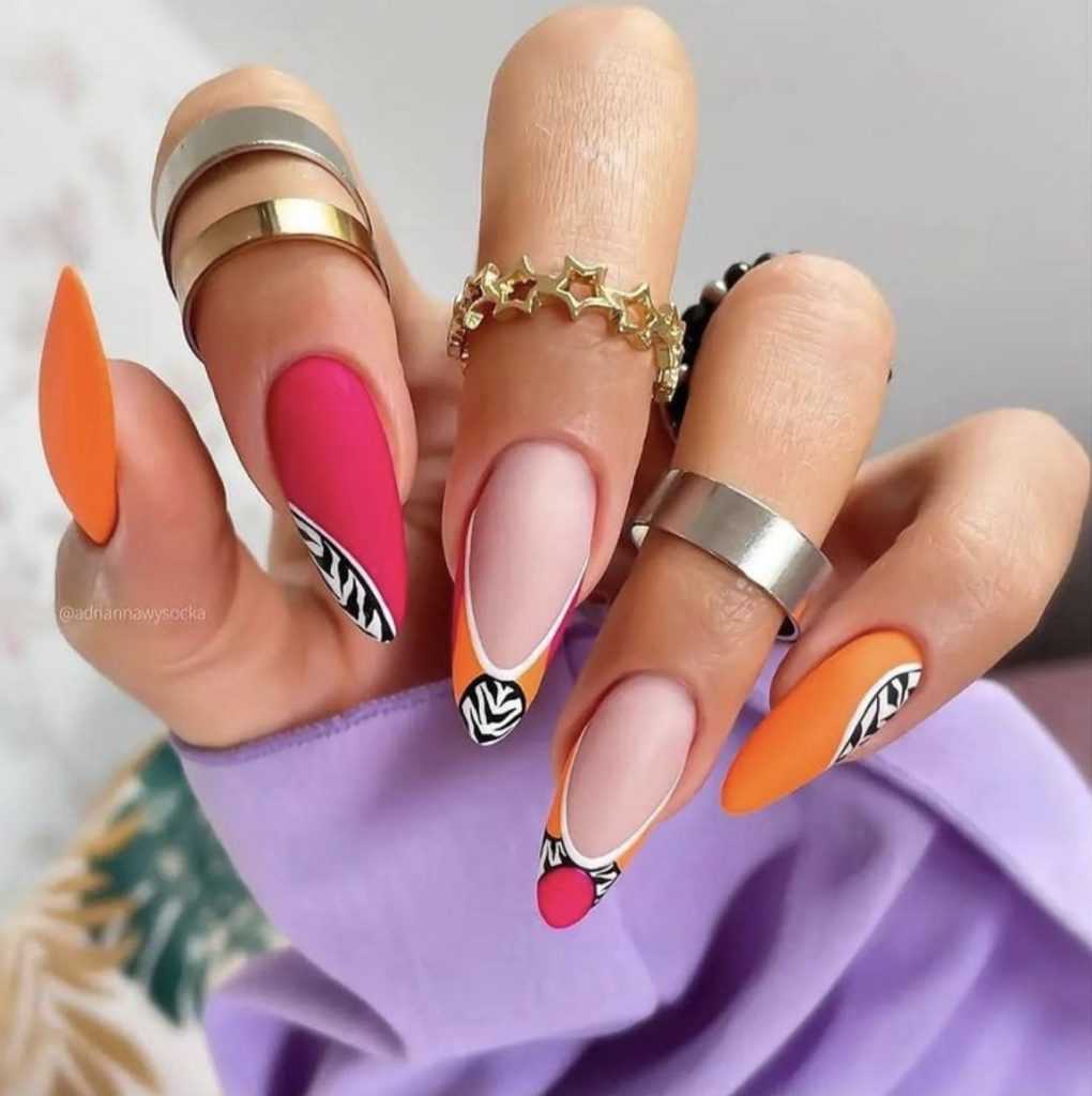 Цветной френч на острых ногтях
