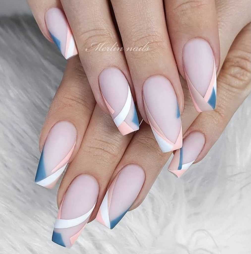 Разноцветный френч по форме и длине ногтей