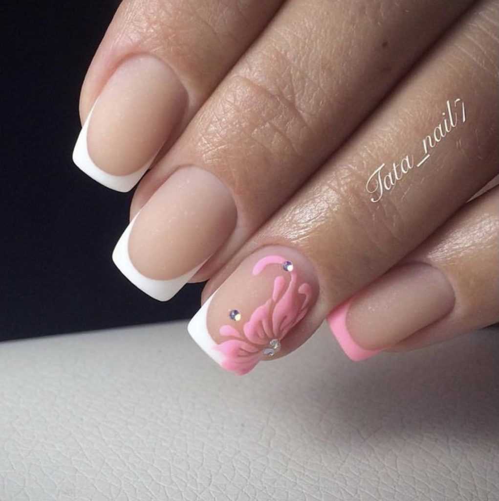Дизайн играет важную роль в маникюре. Как уже говорилось выше, чтобы разнообразить френч, можно расписать ногтевую пластину безымянного пальца. Главное, чтобы это не выходило за рамки разумного и придерживалось главной идеи френча — изысканность и утончённость