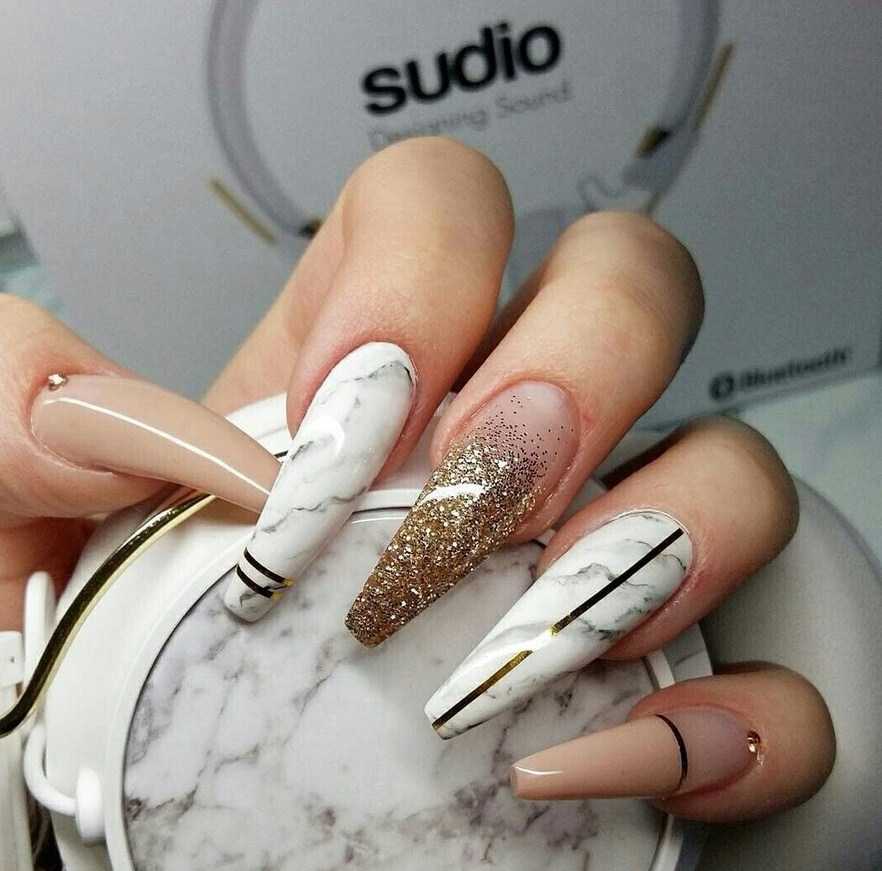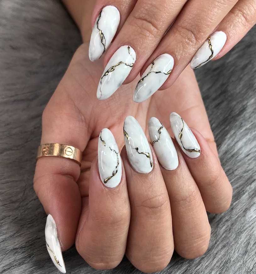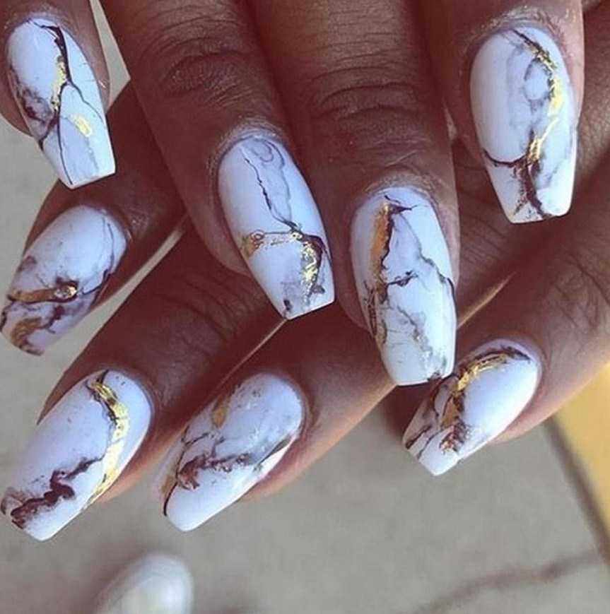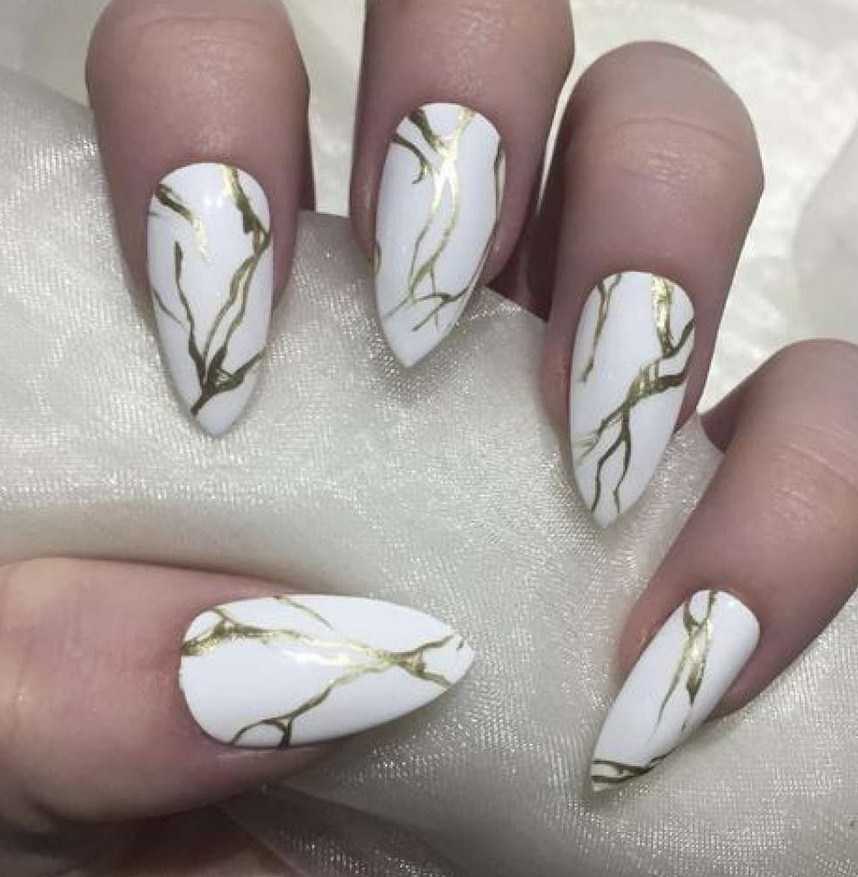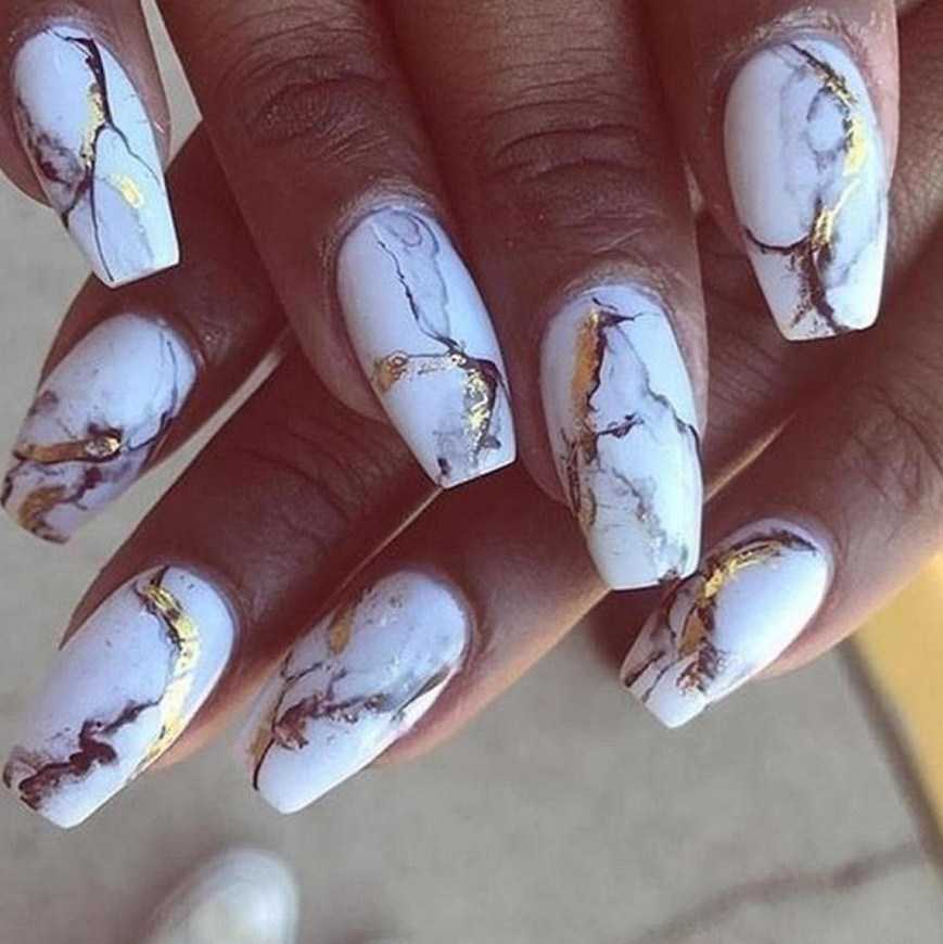 - Роскошный белоснежный мраморный маникюр особенно подойдет для свадьбы, ведь он заметным образом украшает ногти, делая их просто восхитительными.