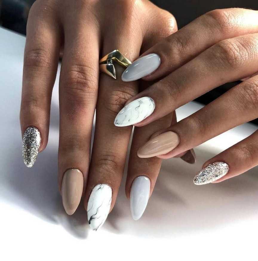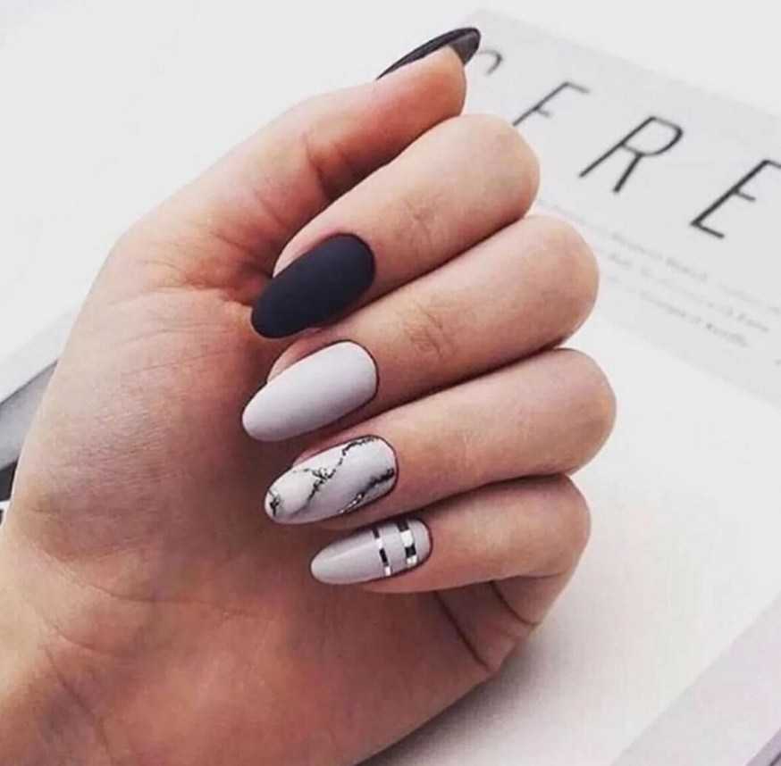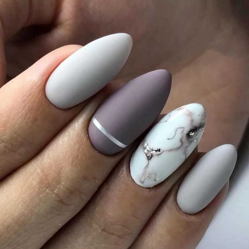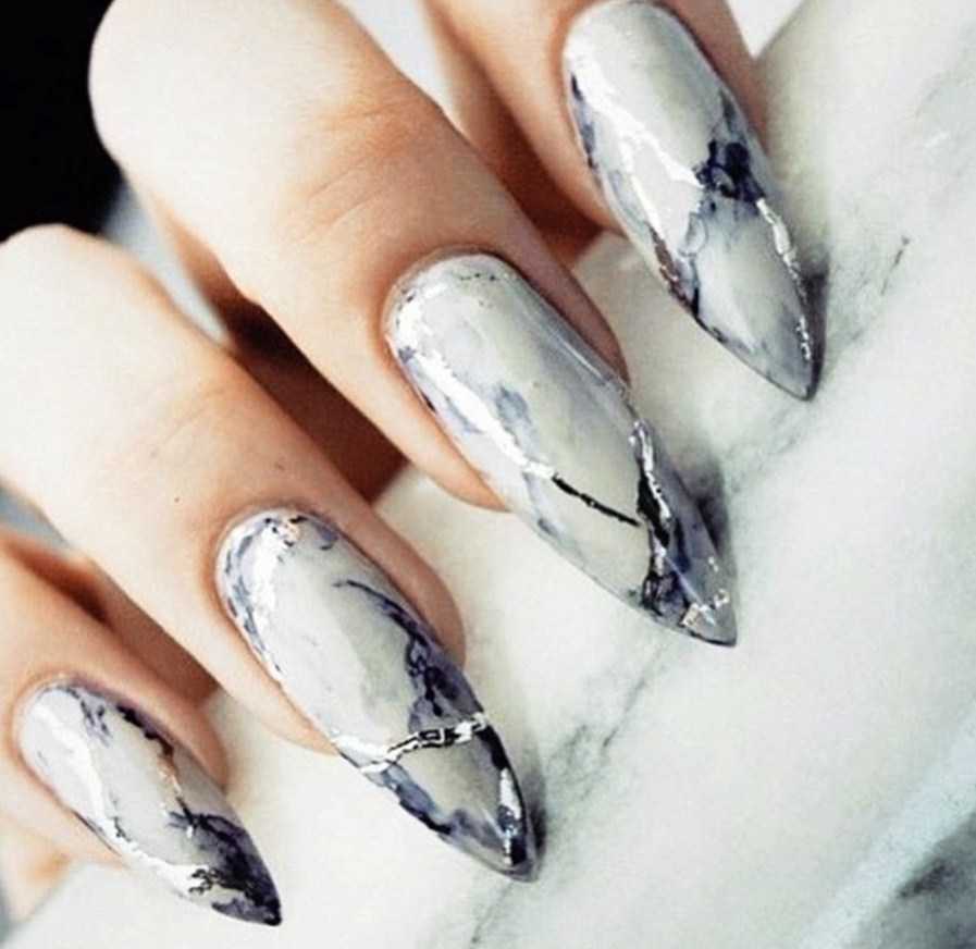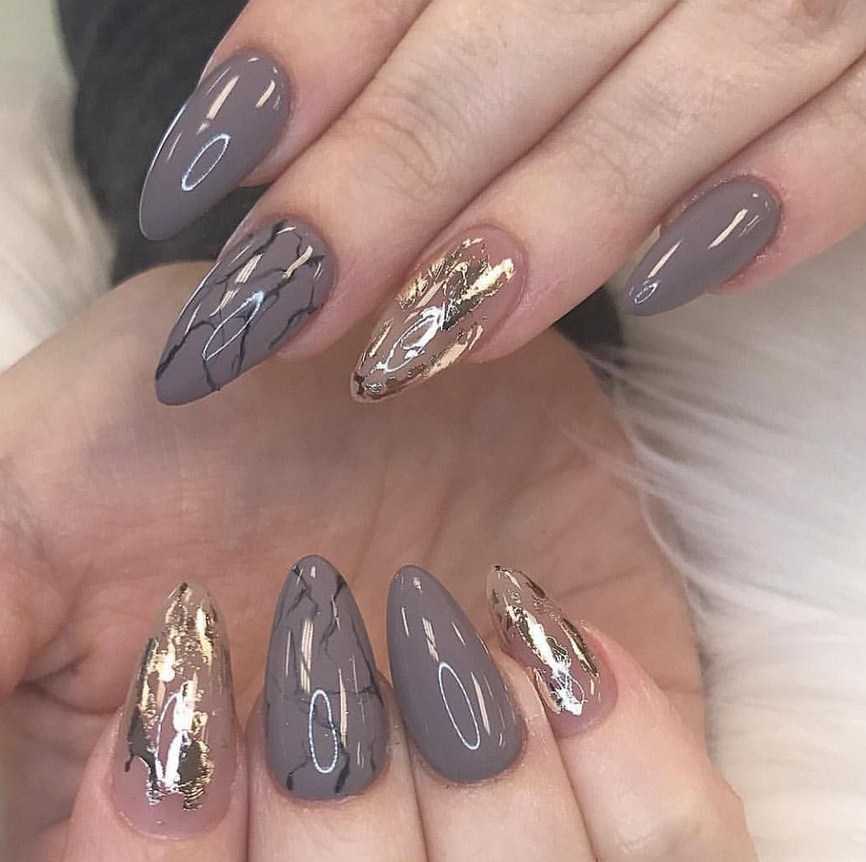 Благодаря тому, что серый входит в список базовых цветов мраморного нейл-дизайна, различные вариации этого маникюра в серых тонах просто не могут смотреться неудачно