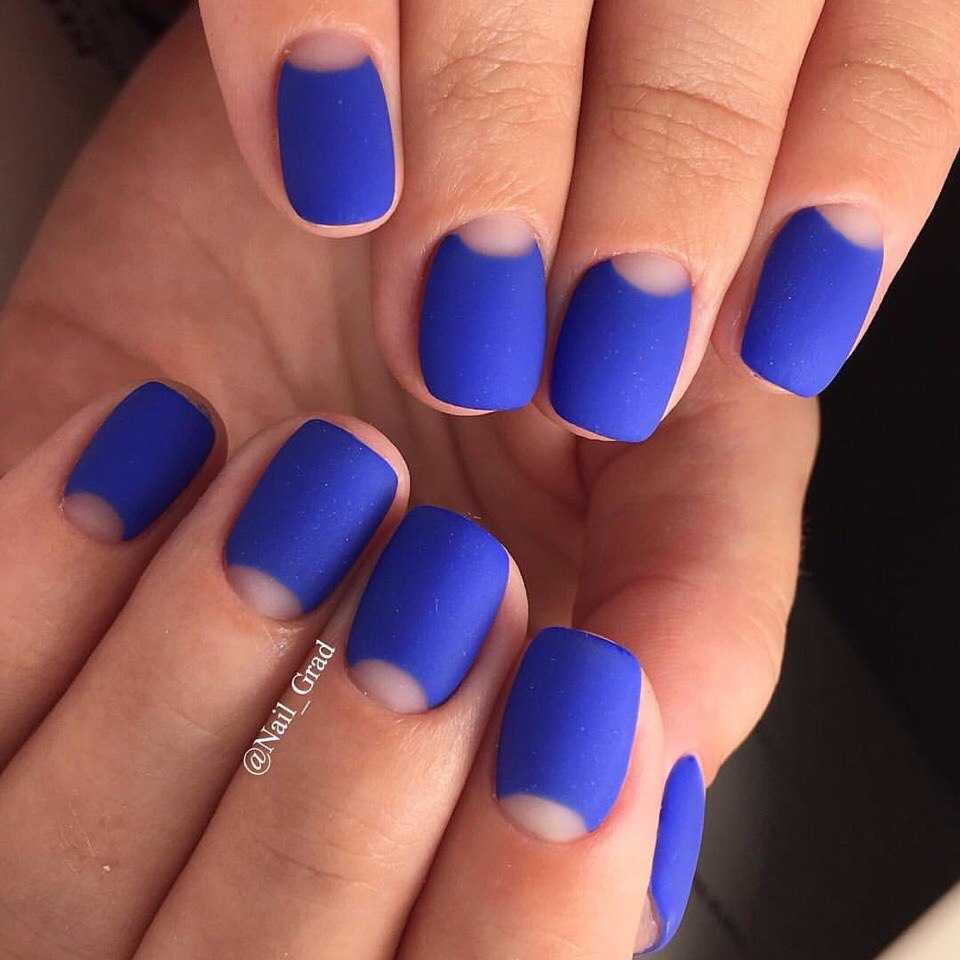 Синий маникюр гармонирует со своими оттенками и серым, желтым, зеленым, коричневым цветом.