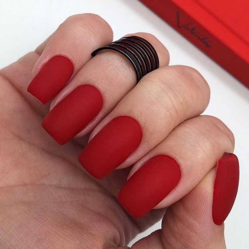 Бархатный эффект матового маникюра украшает даже самые маленькие ноготки. Он всегда выглядит завораживающе, никогда не надоедает. К стильным оттенкам в этом исполнении относятся синий, коричневый, красный, зеленый. Для весеннего периода и лета молодым девушкам подойдут яркий малиновый, темно-розовый, желтый, оранжевый.