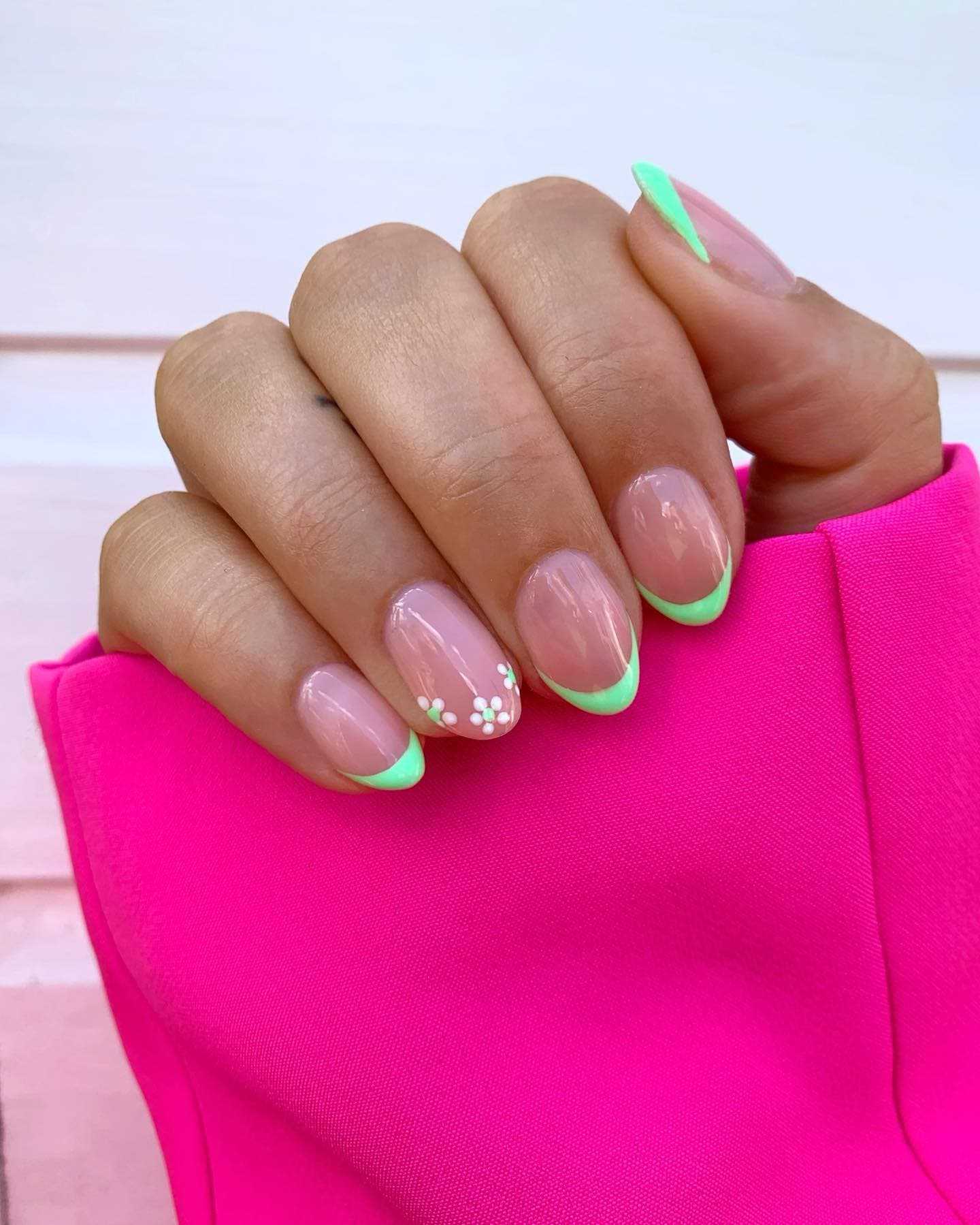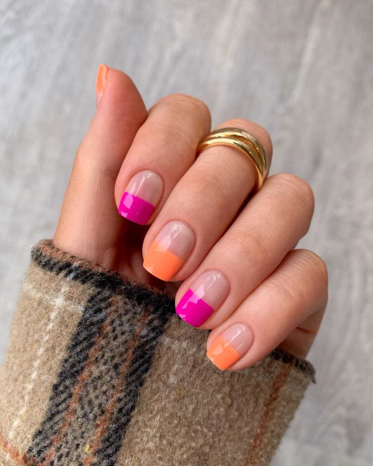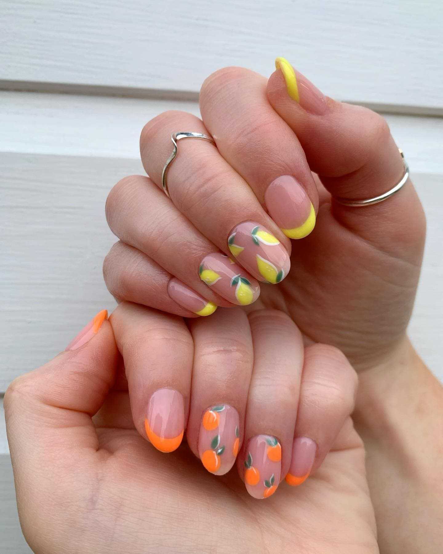Остается актуальным маникюр френч в неоновых тонах, особенно в летний период. Хит сезона — яркие оттенки желтого, лимонного цвета.