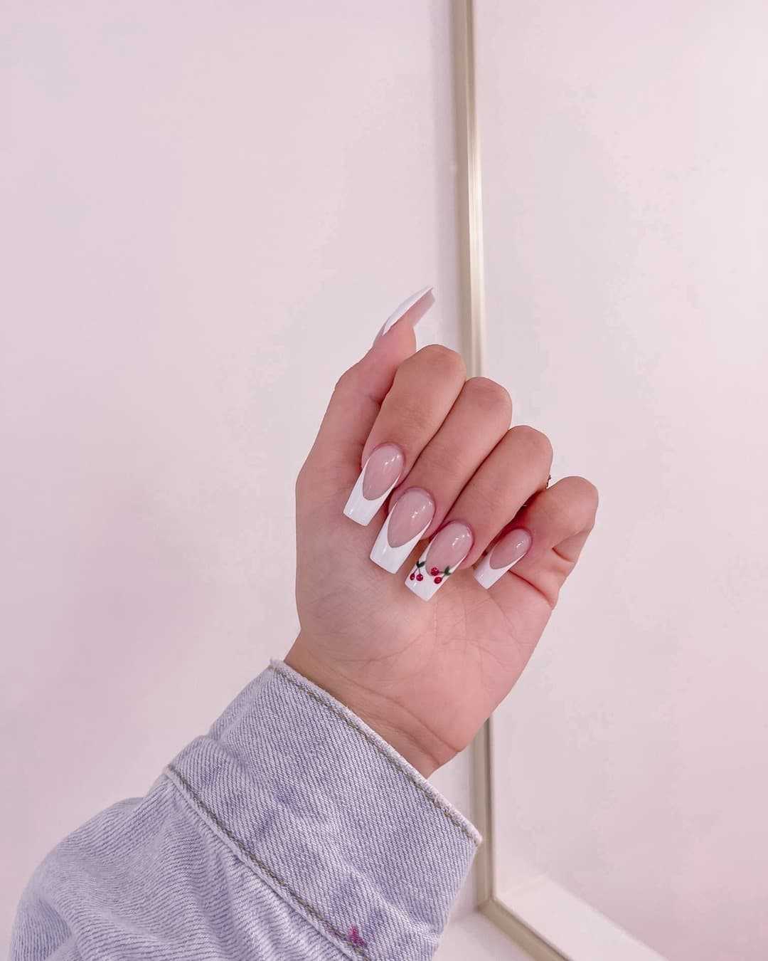 Сочетание цветов и декора в маникюре «френч» квадратной формы