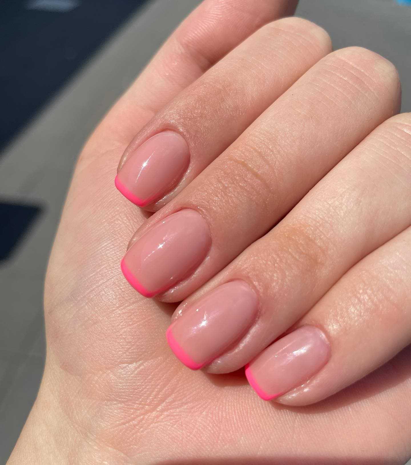 Розовый — вариант для тех, кто не хочет делать белый френч, но еще не готов сделать слишком яркие или черный. Это выбор нежных и романтичных натур. Хотя розовый френч может быть не просто пастельным, но очень, очень ярким. Например, в оттенке фуксия.