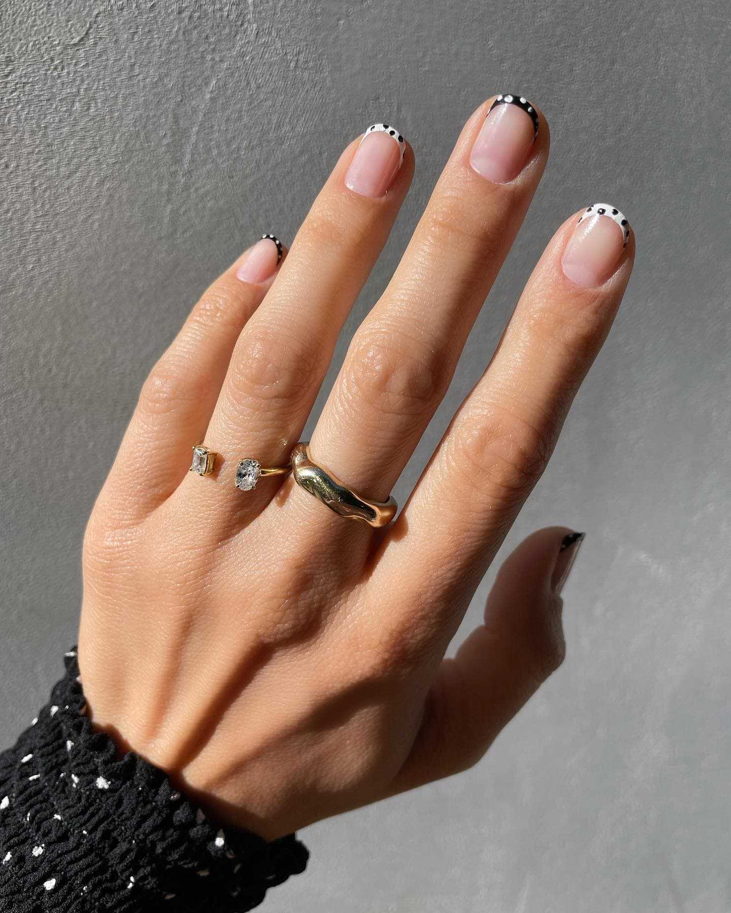 Горошек, как и полоски — это вариант на все времена. Они служат отличным нескучным фоном и представляют особую категорию главной темы маникюра, в том числе французского. Размеры точек, их цвет, наполнение и размещение — всё это создаёт хорошую базу для оригинального дизайна.