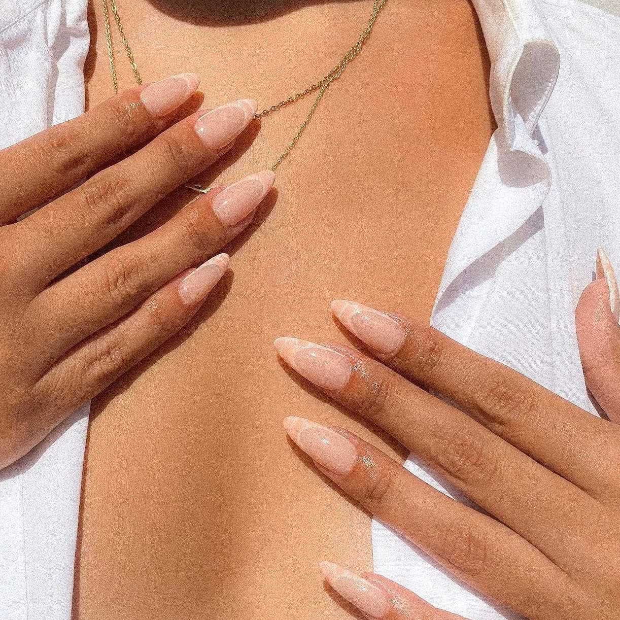 А вот миндалевидные ноготки всегда прибавляют пальчикам длины. В этом случае вы можете экспериментировать с различными трендами, формами и цветом френча.