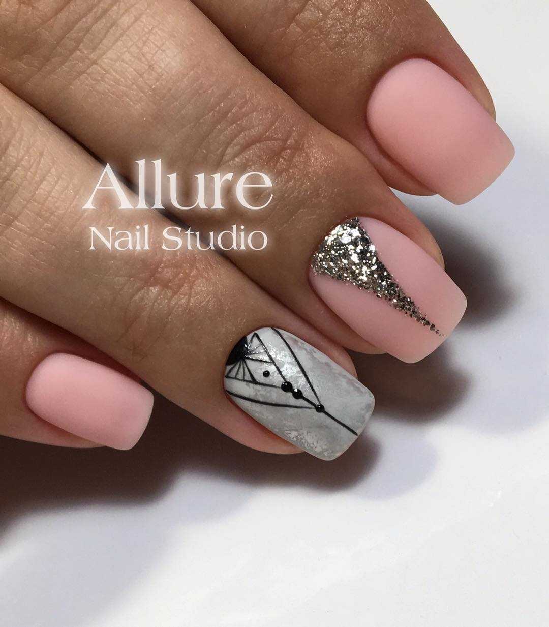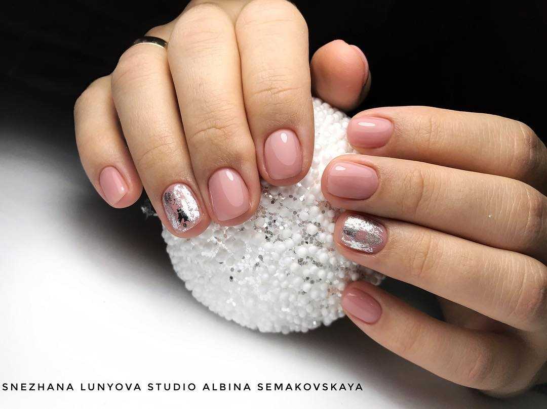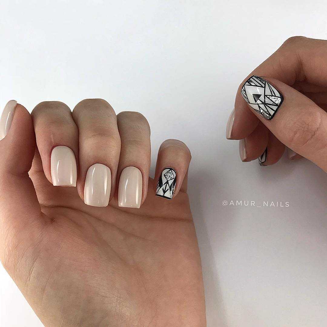 Дизайн в нюдовых тонах прекрасно сочетается с другими лаками, например, классическим белым или чёрным, аккуратными акцентами и дополнениями в виде глиттера, пайеток, конфетти либо фрагментов фольги. Главная особенность этого маникюра – не перегрузить нюдовое покрытие украшениями.