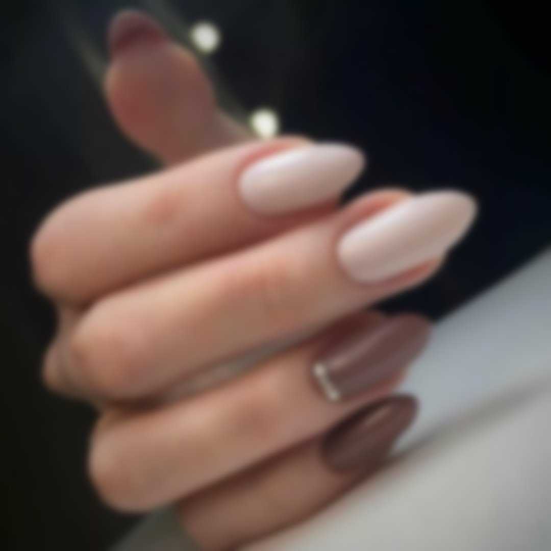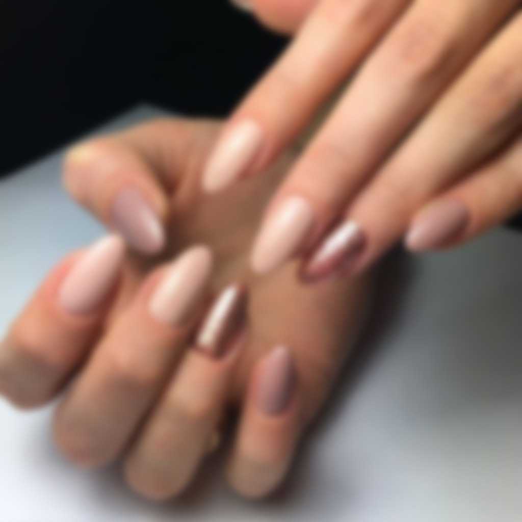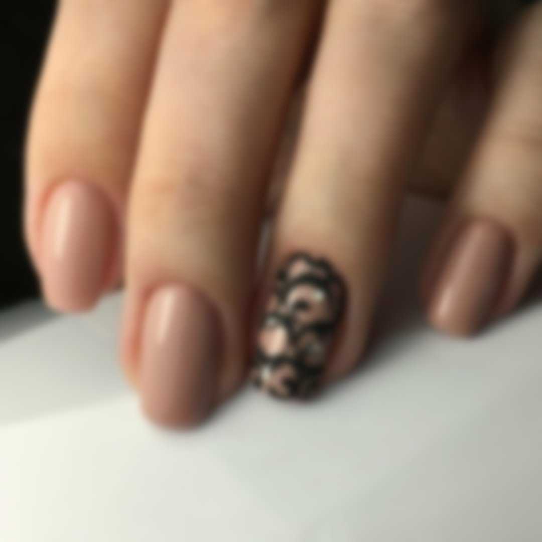Искусственное затемнение одного выборочного ногтя по сравнению с другими — это еще один хороший способ сделать классический нюд более оригинальным. Подберите цвет лака темнее, чем цвет остальных ногтей. Выберите любой ноготок, где он лучше всего подойдет — большой либо безымянный. Его дополнительно можно украсить крупным декором или блестками.