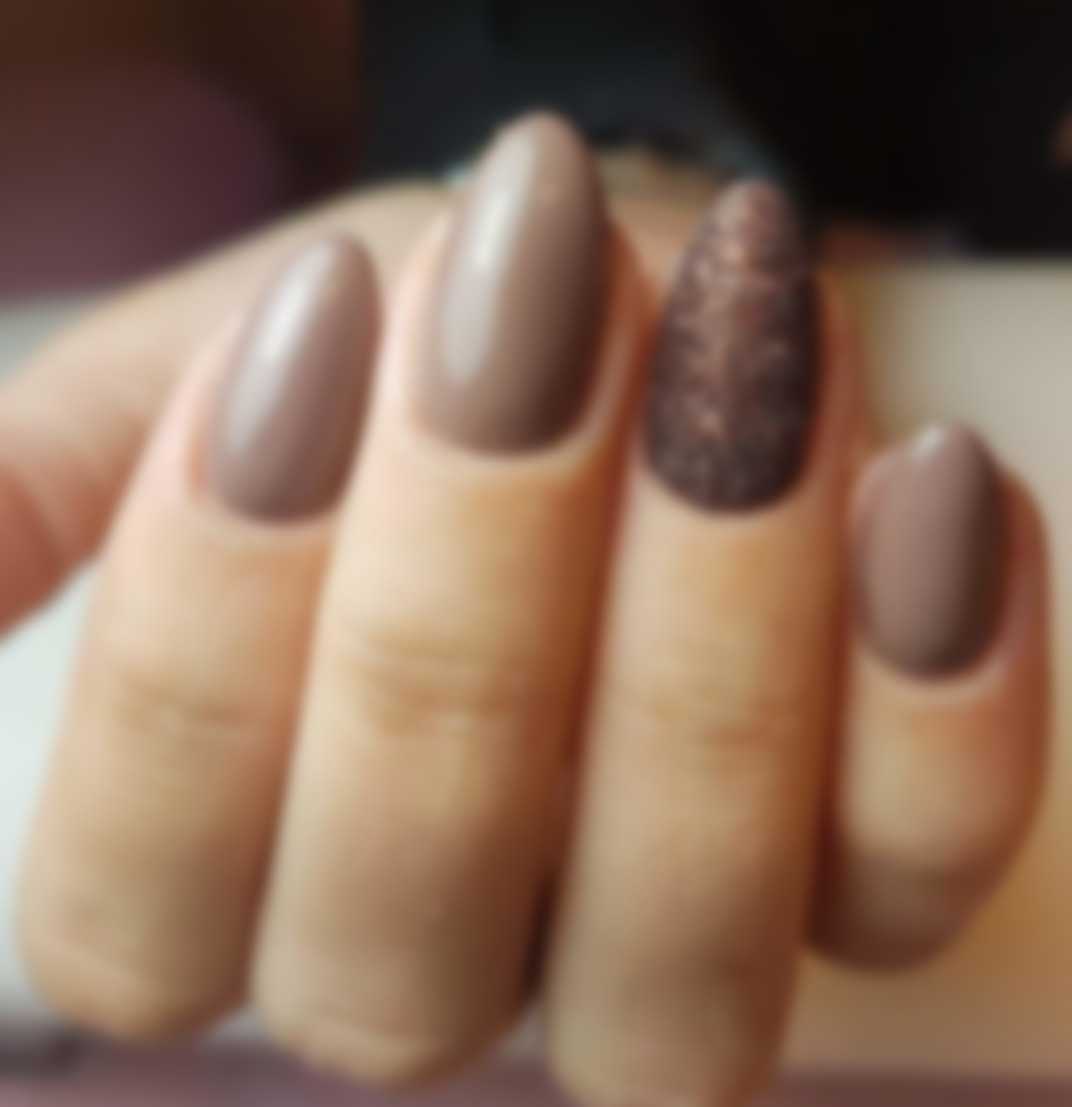 Маникюр в цвете кофе с молоком привлекает внимание, выглядит ухоженно и очаровательно. Производит благоприятное впечатление и подходит для естественного покрытия ногтей