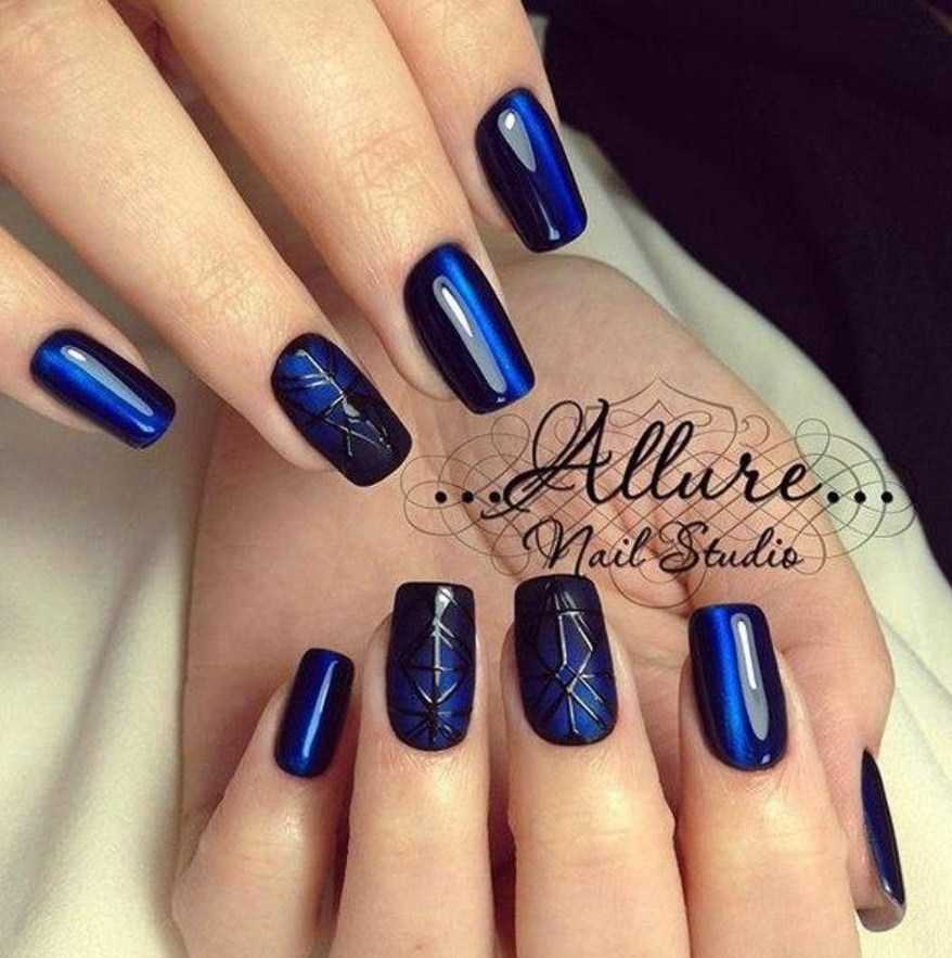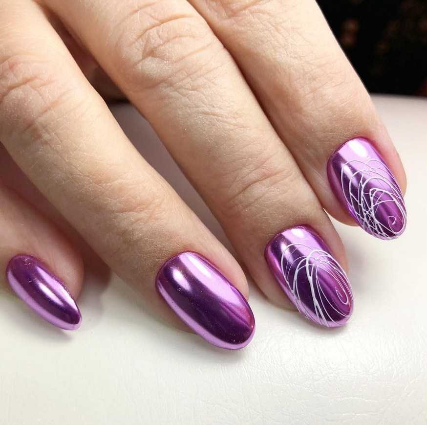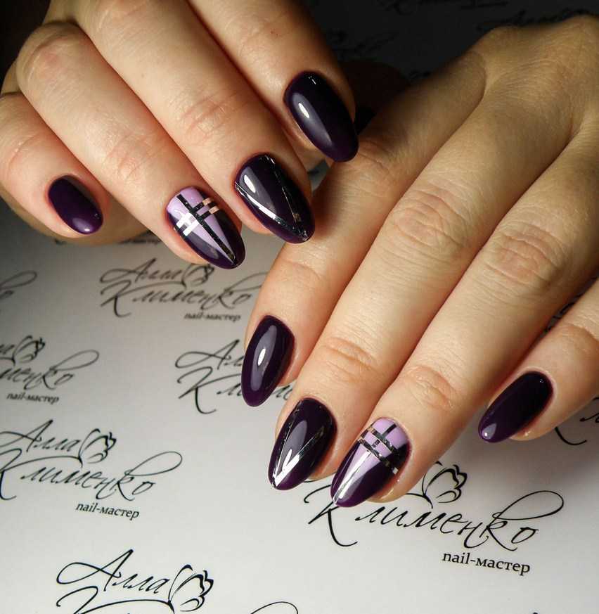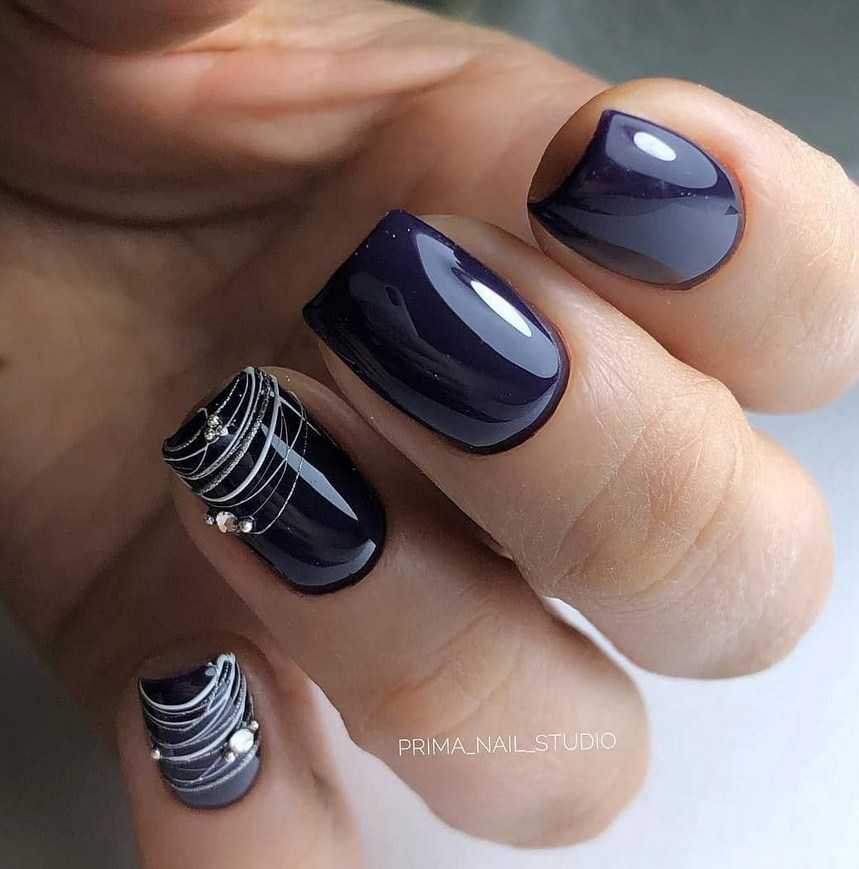 Такой лаконичный дизайн легко можно испортить объёмными рисунками или массивным декором, особенно если вы используете золотую или серебряную основу. В данном случае подойдёт использование акцента на нескольких пальчиках.
