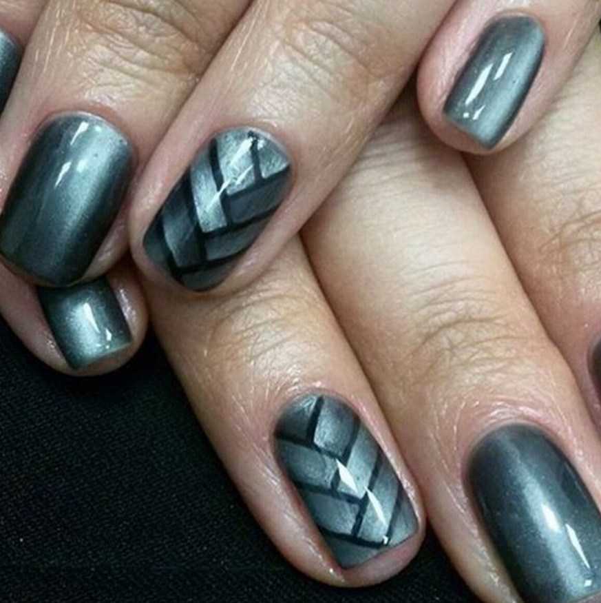 - Серый лак также рекомендуется для создания красивого маникюра. Серый лак может отличиться металлическим блеском, который позволит создать элегантный и при этом универсальный дизайн.