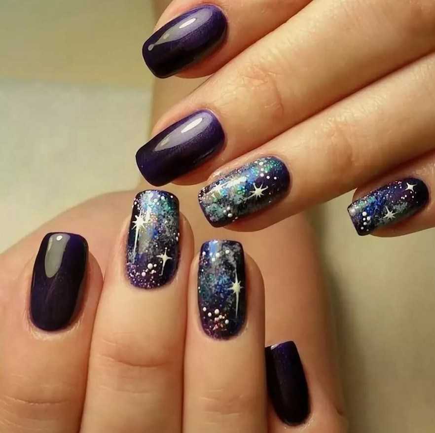 Праздничный маникюр – это всегда яркие насыщенные цвета с обязательным присутствием блесток, пайеток и других искрящихся элементов. Магнитные лаки лучше всего подходят для создания новогоднего арта, так как в их составе уже присутствуют необходимые пигменты и блестки.