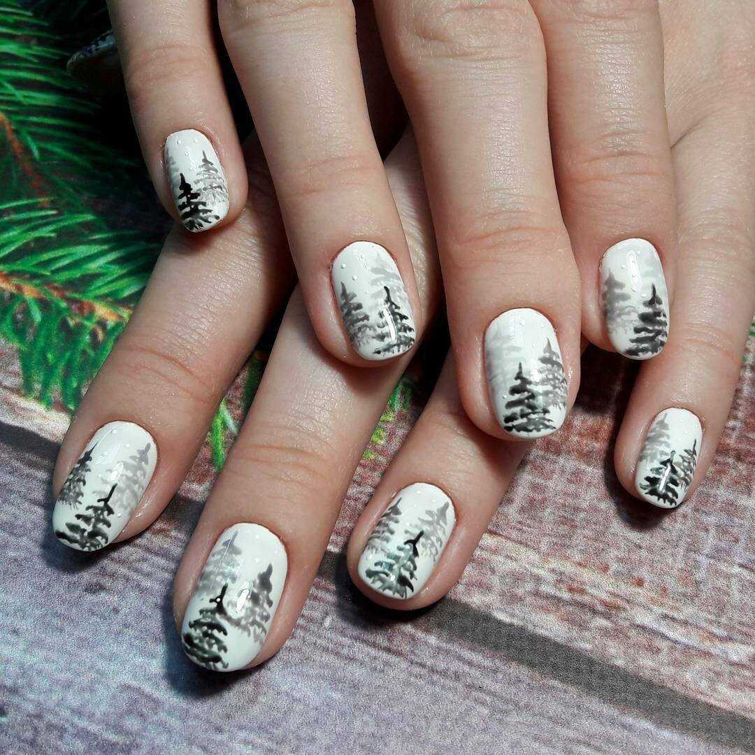 Тем не менее, предлагаем обратить внимание на такие рисунки, как елочки, шишки и лесные пейзажи. Они выглядят совершенно по-другому и помогают окунуться в представление о зимней сказке