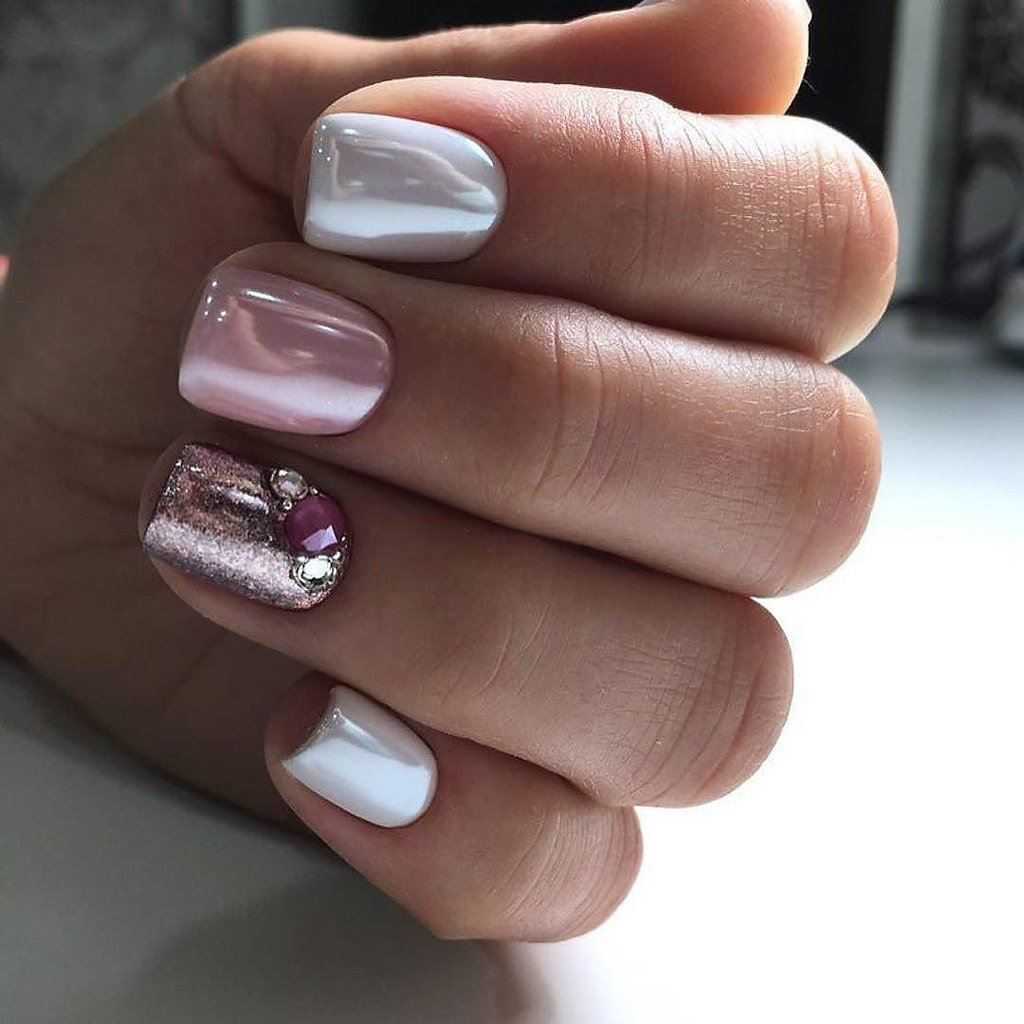 Это может быть серый, белый, бежевый или розовый цвет. При желании всегда можно добавить небольшое количество блесток или легкий, еле заметный рисунок. Такой маникюр определенно будет хорошо смотреться с любым образом.