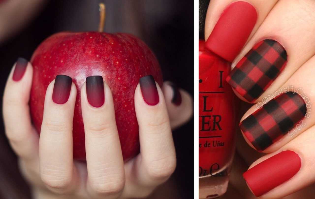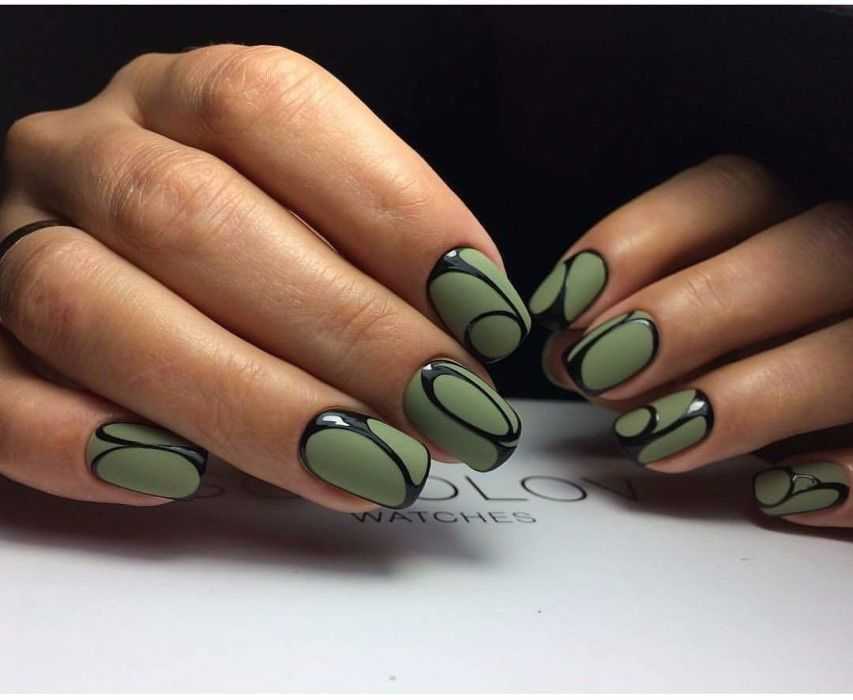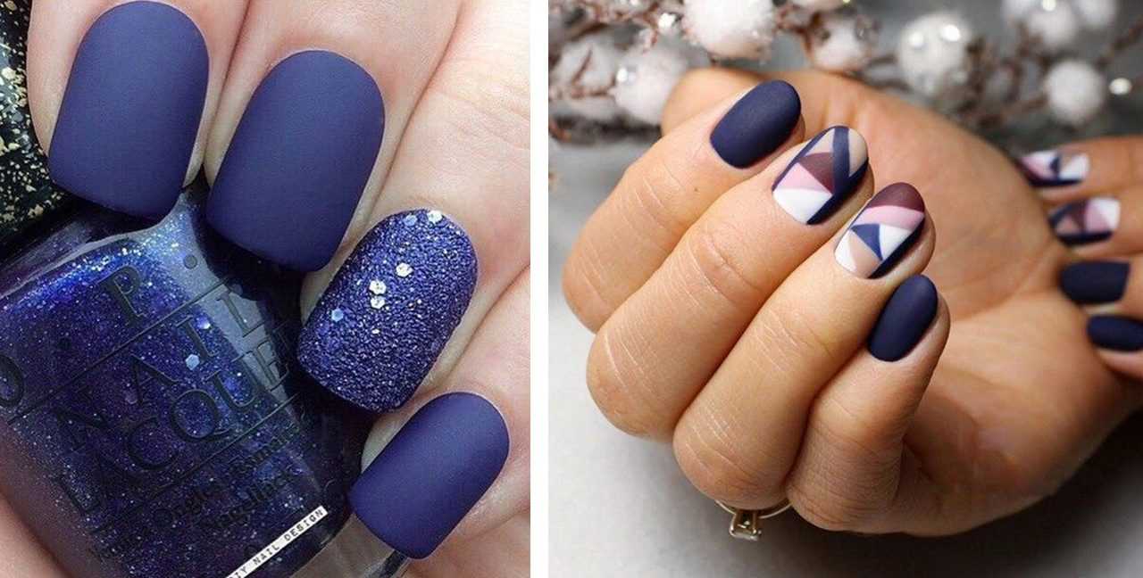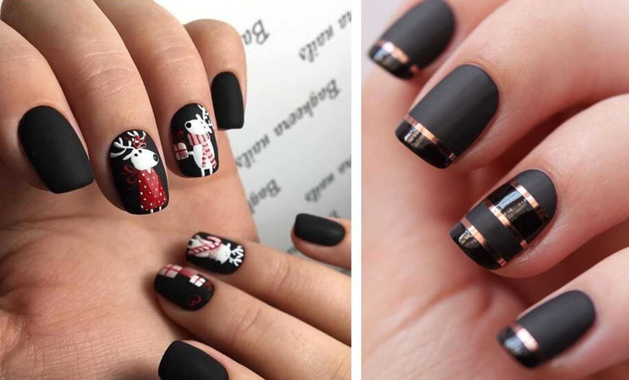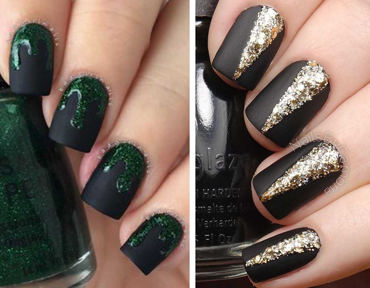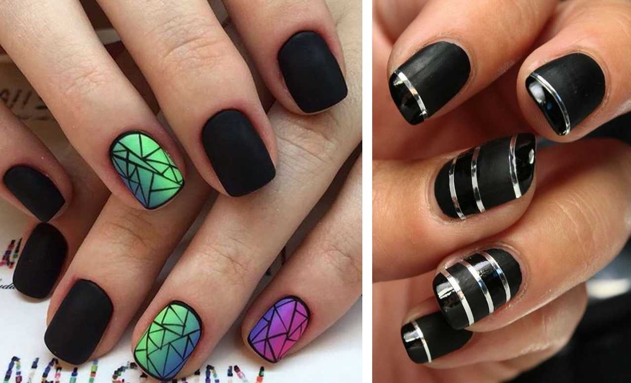 Важно добиться контрастности матового маникюра. Бархатная текстура смотрится достаточно мягко, поэтому дизайн в темных тонах в нем будет не лишним
