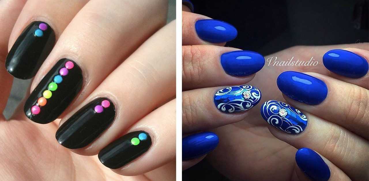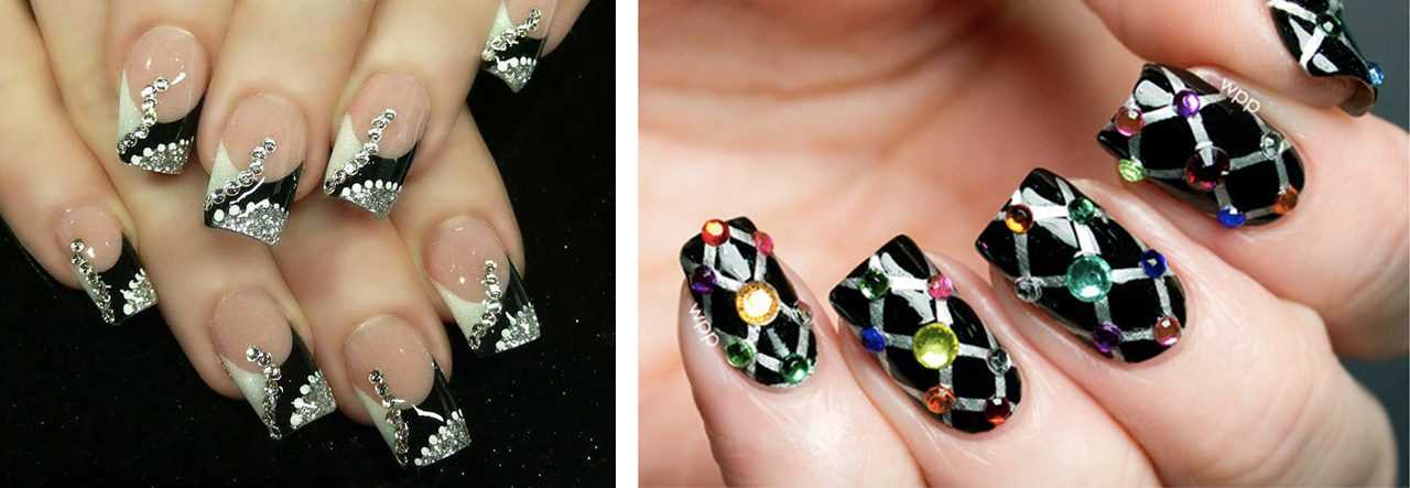 Если предполагается использовать дополнительные декоративные элементы, то нужно помнить: стразы, глиттерные покрытия оптимальны с темными оттенками лака, фольга и бульонки — со светлыми.