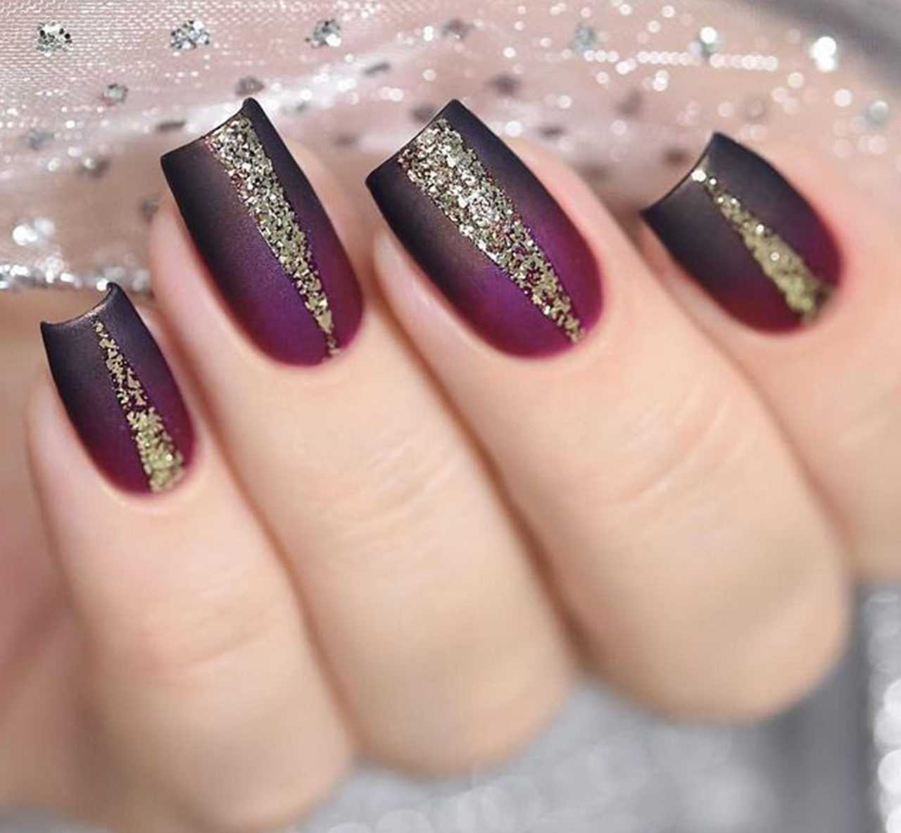 Если использовать при создании маникюра небольшие золотистые блестки в виде глиттера, то можно добиться яркого и неординарного образа. Френч, созданный в стиле миллениум, а также акцентный маникюр, где ногтевая пластина полностью покрывается глиттером — это основные тренды нового сезона.