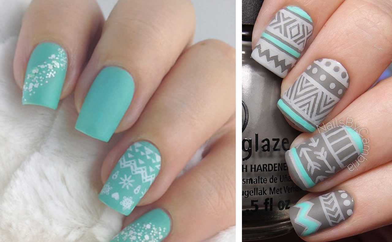Зелено-синее и зелено-голубое сочетание на женских ноготках вызывают ассоциации с ясным весенним небом и сочной зеленью. Эти два оттенка не часто встретишь в маникюре одновременно, поэтому, воплощая подобную комбинацию в жизнь, надо быть весьма осторожным.