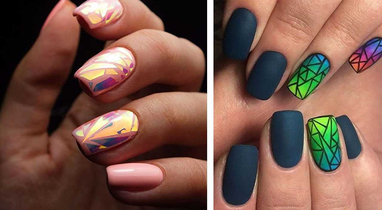 Тонкие полоски фольги в золотых тонах на протяжении длительного времени выделялись неким шармом, который позволяет наполнить любой дизайн ногтей. Применение фольги на сложном разноцветном дизайне с негативным пространством и геометрией — это отличный вариант для любителей поэкспериментировать.