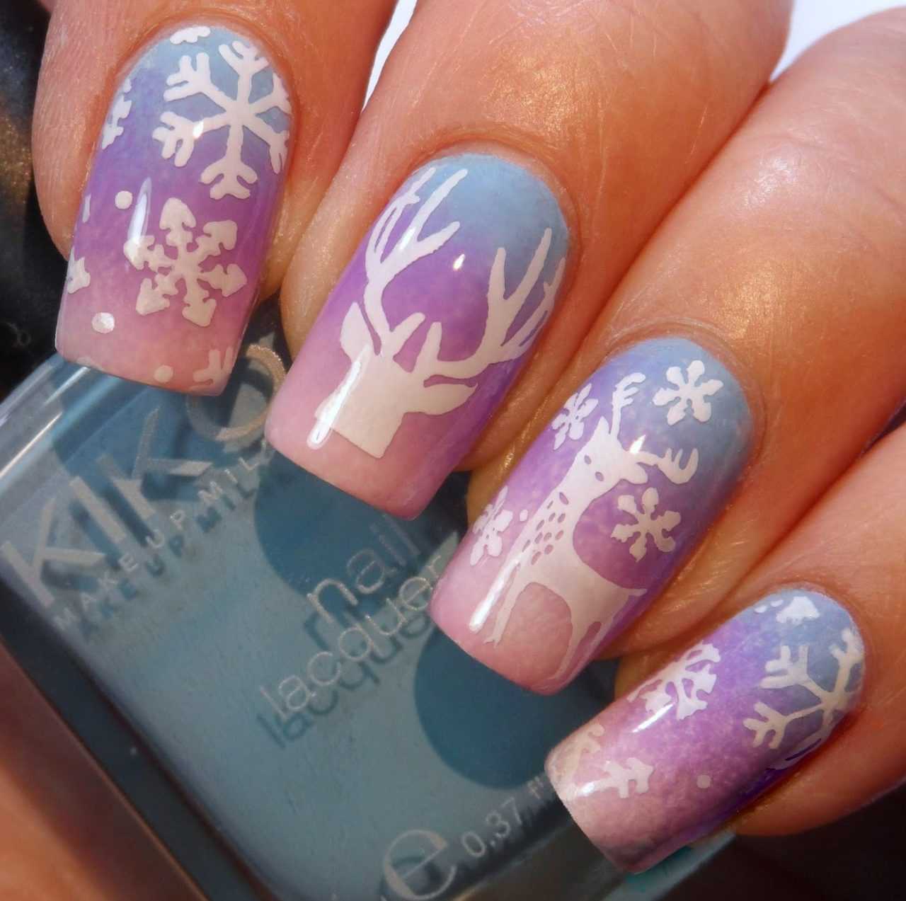 Такой дизайн ногтей с рисунками сразу создаст новогоднее настроение.