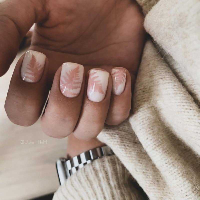 Оптимальный вариант — молочной база и чуть-чуть акварели или небольшой рисунок в минималистичном стиле. Один из трендов этого сезона — флористический дизайн. Просто добавьте нюдовым ноготкам тонкие веточки травы или других растений, и ваш маникюр будет удивительно стильным и заметным.
