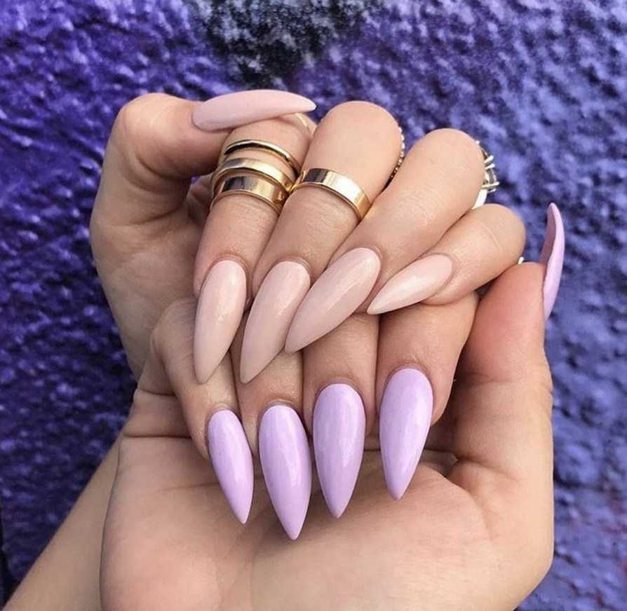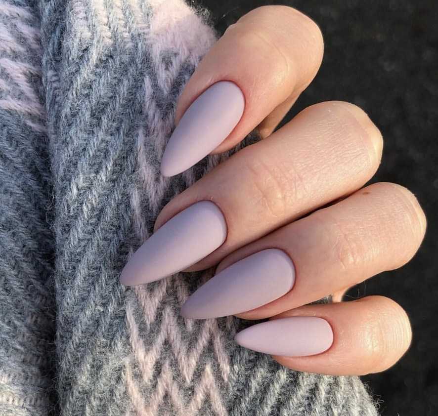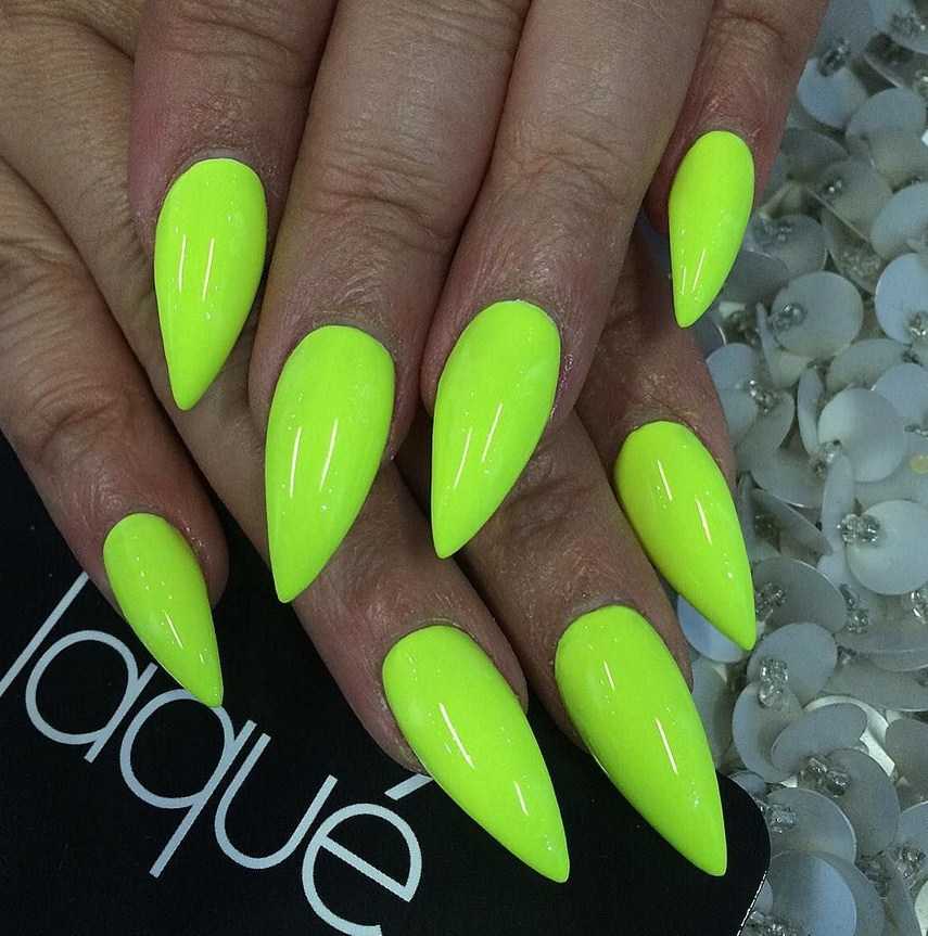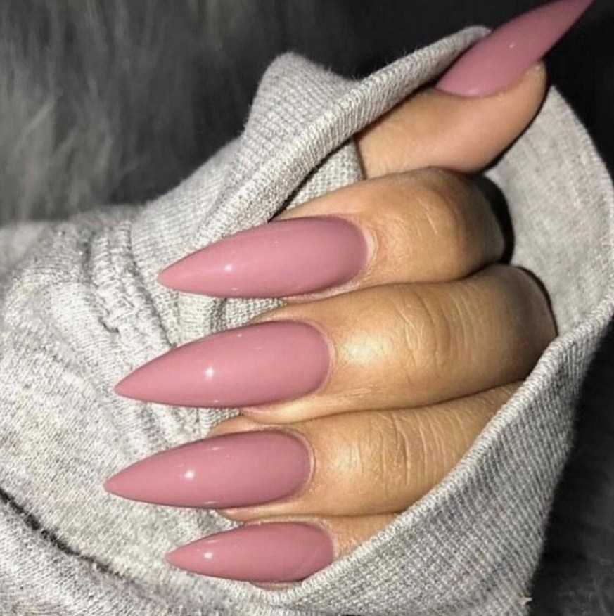 Самый незамысловатый дизайн острых ногтей – монохромное покрытие понравившегося цвета