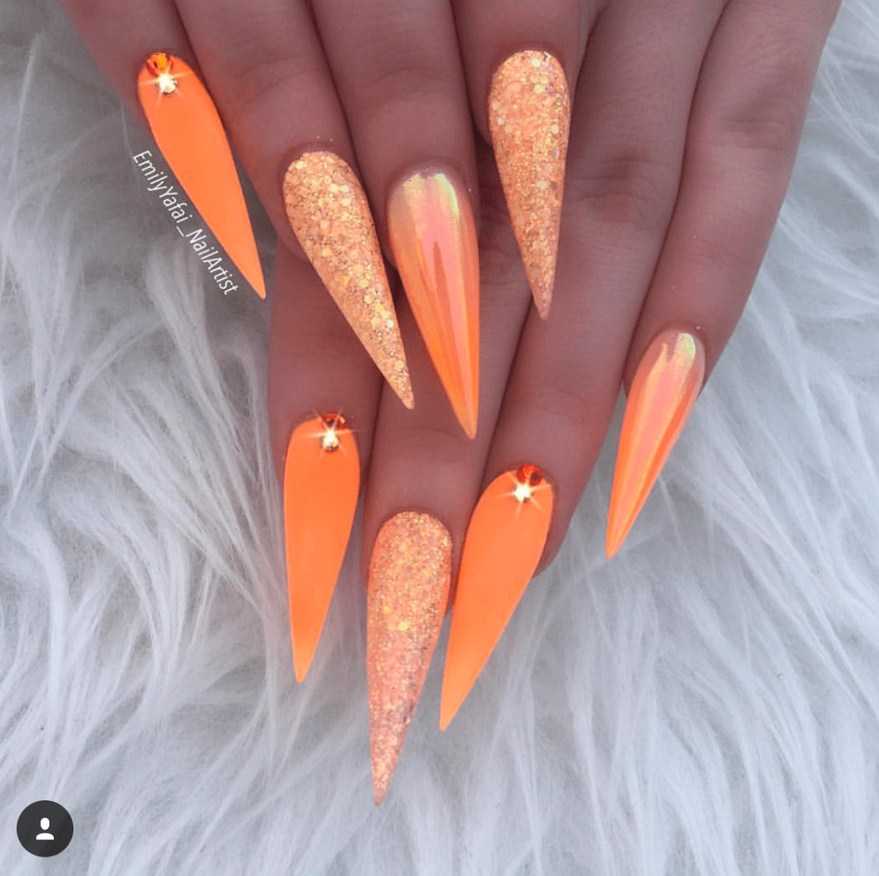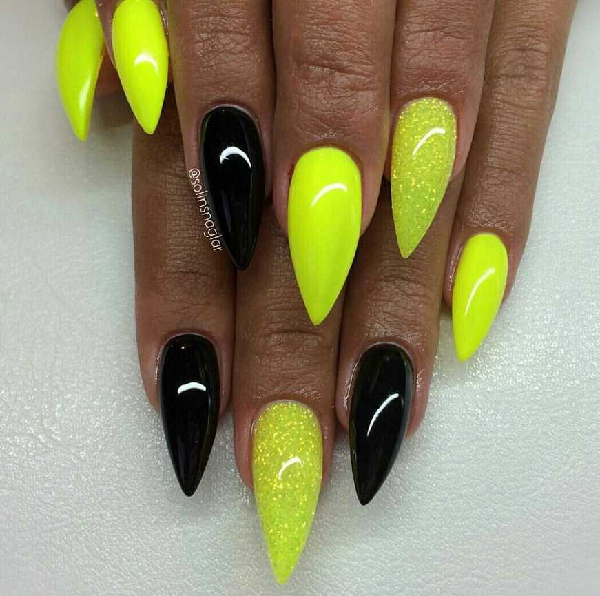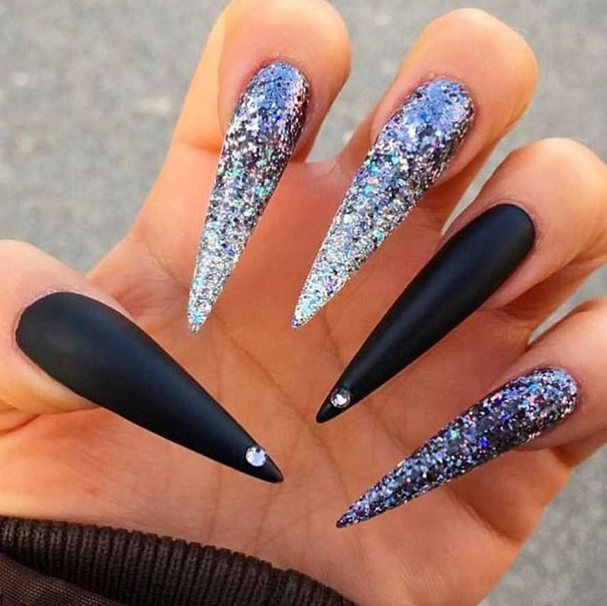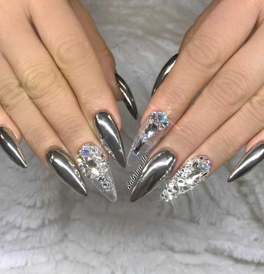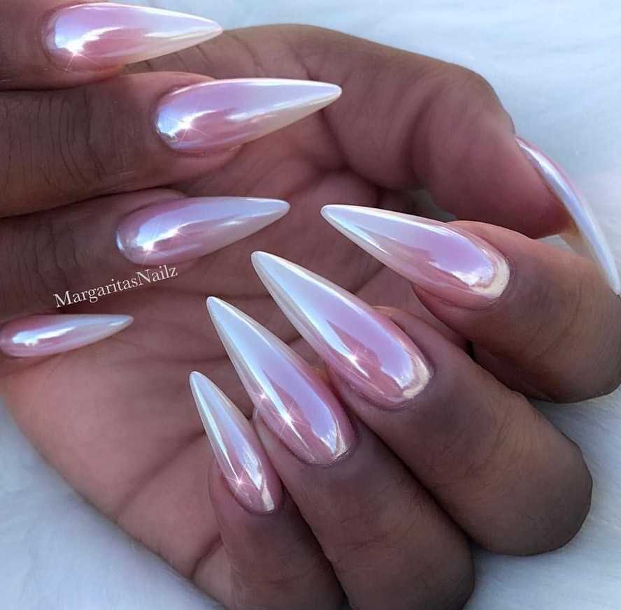 Очень острые ногти (пики). Если миндаль считается самой мягкой вариацией острых ногтей, то пики – наиболее агрессивная, дерзкая. Кончики получаются действительно тонкими и резко заострёнными, линии смягчения маникюра минимальны. Подобные ноготки подходят только для большой длины и, как правило, укрепляются гелем, иначе они могут быстро отломиться.