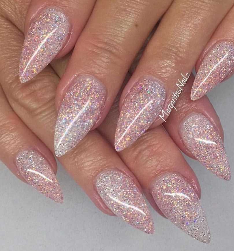 Блестки можно использовать лишь в ограниченном количестве. Лучшие места размещения – это снизу, сверху в углу. Крупицы могут быть в виде пыльцы, малые или средние. Не стоит слишком сильно перегружать стиль данного вида маникюра.