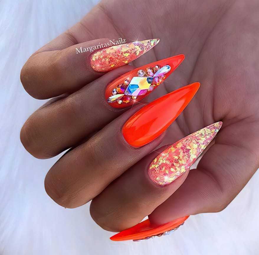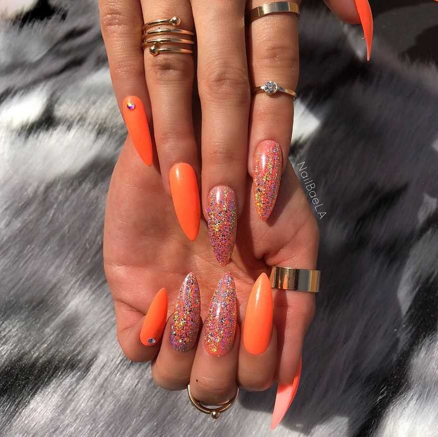 Для заострённых ноготков идеально подходят классические цвета, но яркие оттенки тоже не возбраняются и могут участвовать в создании неповторимого нейл-арта: