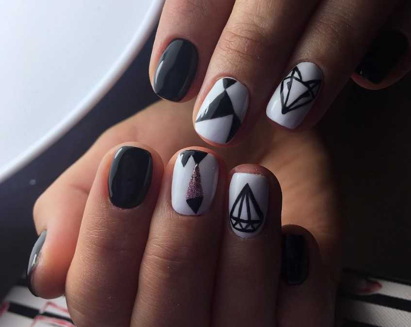 Черно белый маникюр оригами 2022 — популярный дизайн фото, варианты