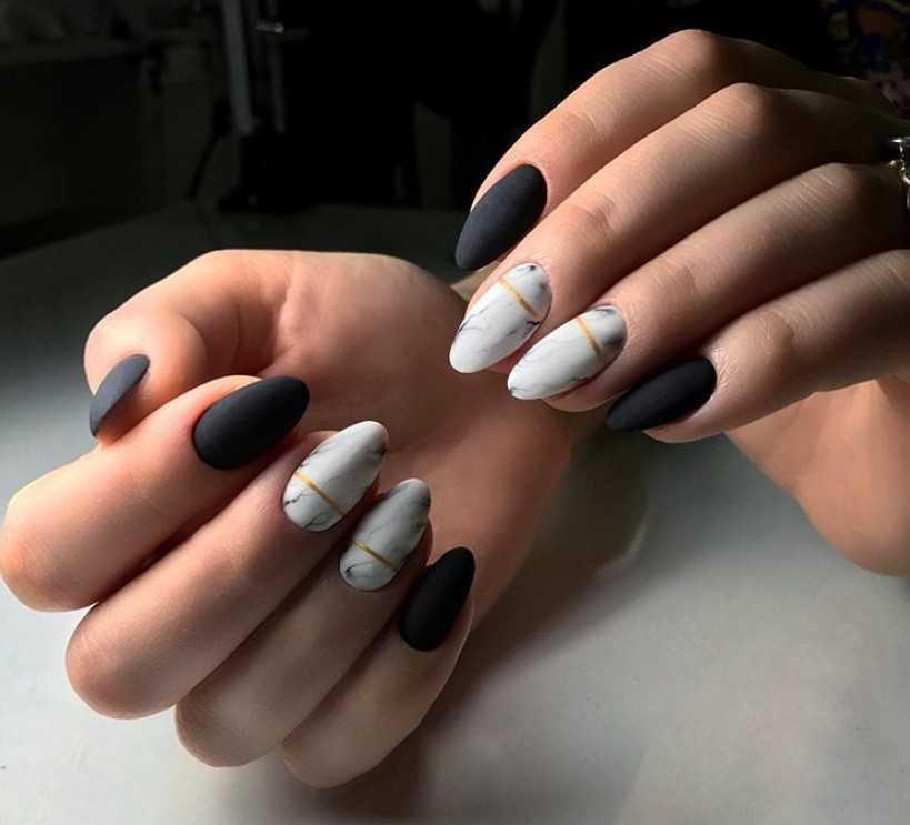 Чаще всего маникюр в ахроматических цветах сочетает такие виды узоров:
