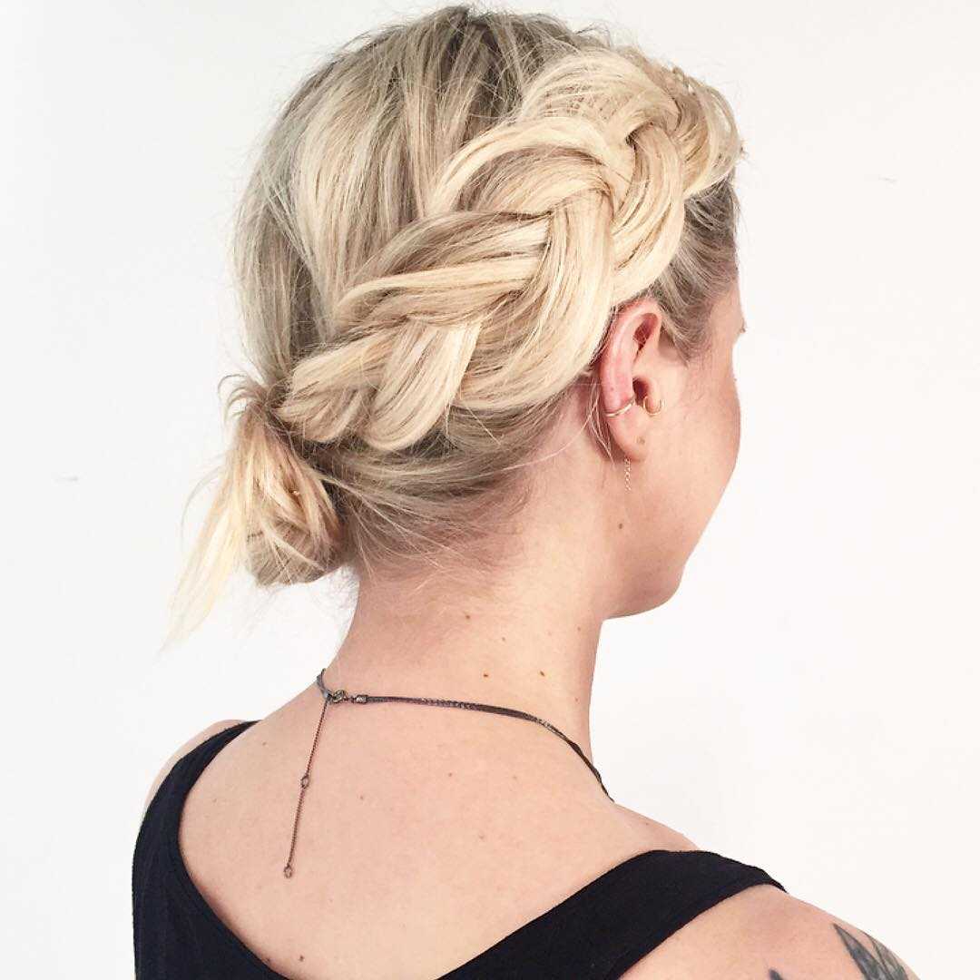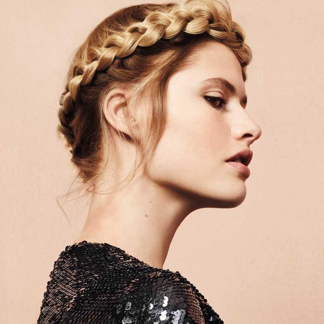 если длина волос позволяет, можно заплести часть волос в косичку, идущую по периметру, а остальные чуть покрутить;