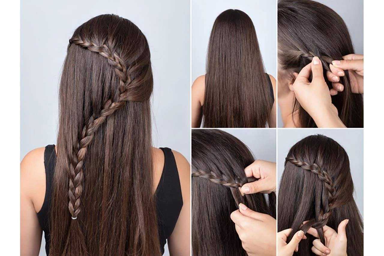 Шевелюра делиться пополам вертикальным пробором. Левая часть закалывается, чтобы не мешать какое-то время, а правая остается в первоначальном виде. У лба берется небольшая прядь и делится на три части. Из этих трех частей плетется обычная косичка. После того, как сделано четыре оборота в косе, следует начинать подбирать локоны в косу из свободной массы, но только с правой стороны.
