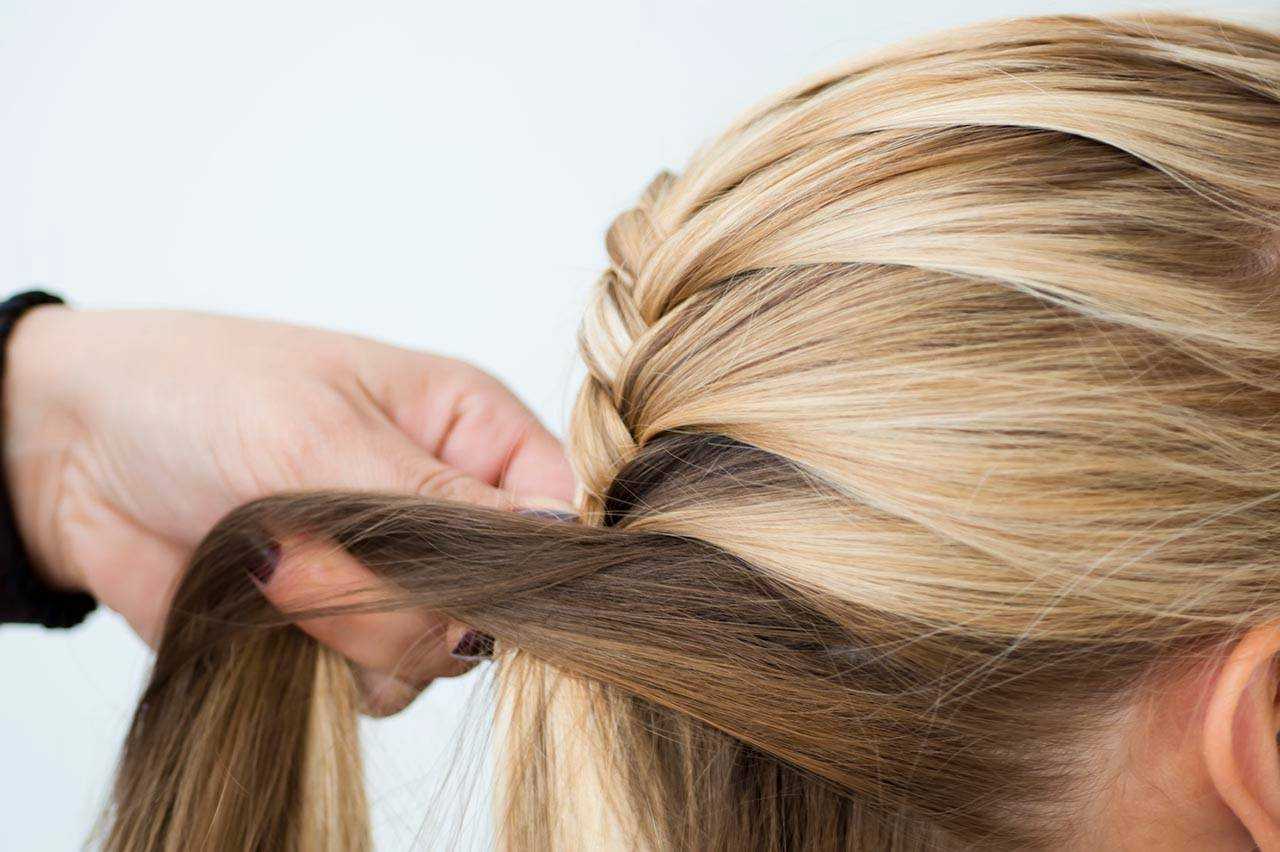 - Выделите три пряди волос и начните плести французскую косу, постепенно вплетая волосы из основной массы волос.