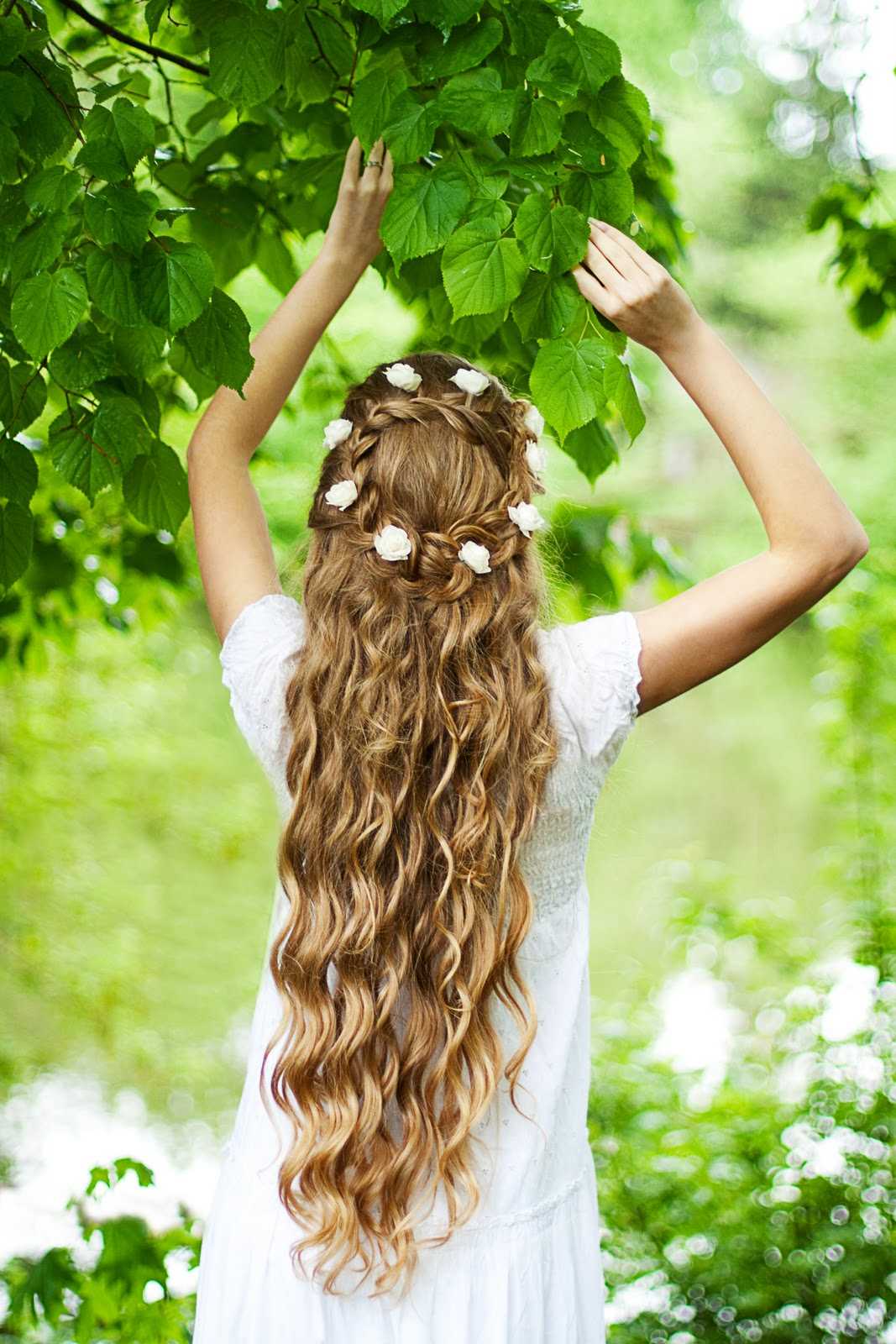 Для длинноволосых девочек имеется множество разнообразных вечерних укладок. Для создания пышности – на ночь заплетаются многочисленные косички. Если девочка имеет вьющиеся от природы волосы, то следует смазать гелем ладони и втереть его в кончики кудрей, придавая им нужную форму и направление. Многие красивые прически можно сделать собственными руками, руководствуясь фотографиями и своей фантазией.
