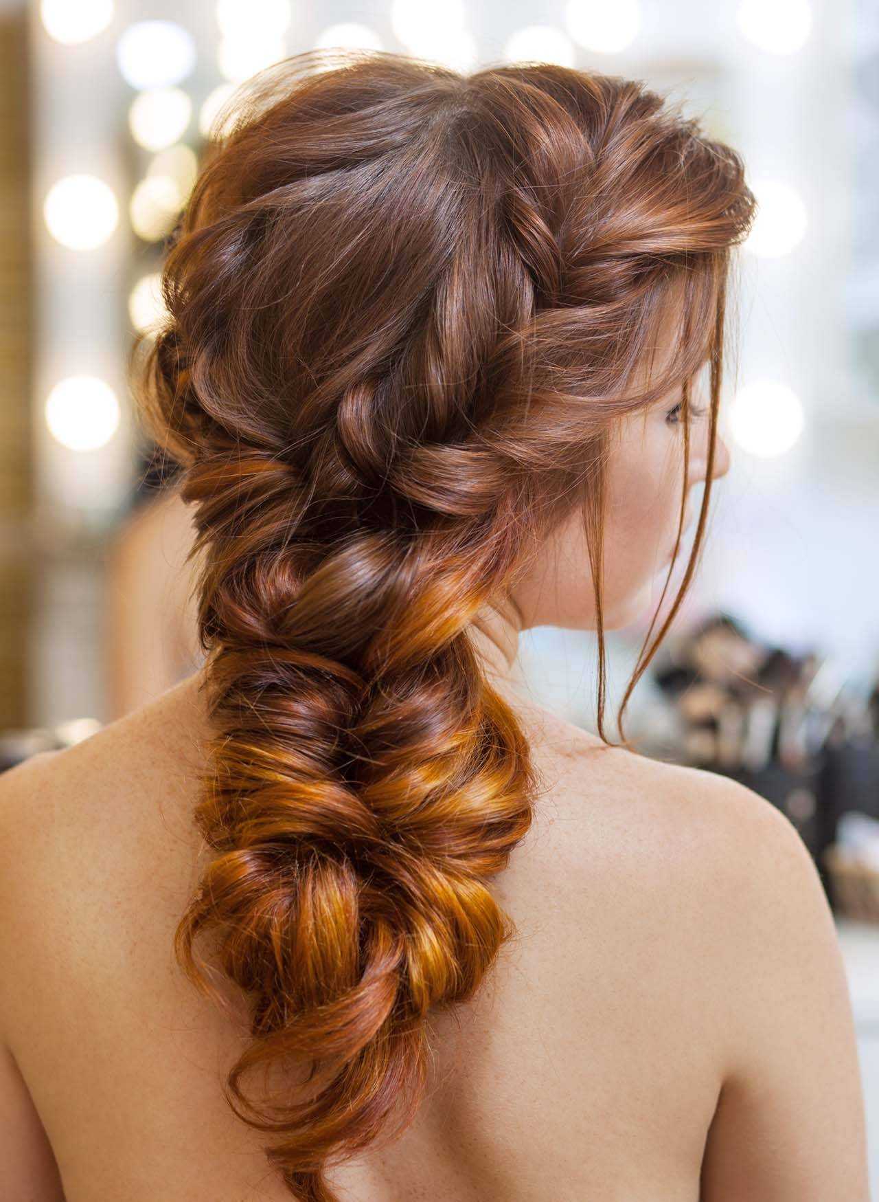 - Плетение может быть необычным и ажурным. Красиво смотрится колосок, французская коса и рыбий хвост. Изящно, элегантно, аристократично и бесконечно женственно.