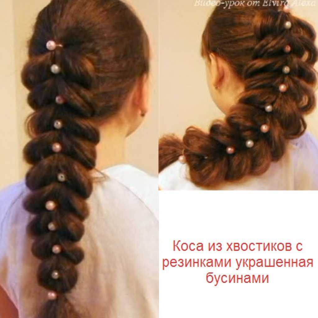 - Так проделываем с любой косой. На готовой прическе следим, чтобы бусинки были по средине и не смещались.