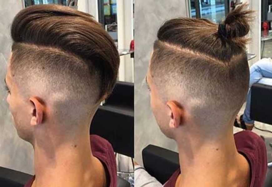 - провести аккуратный горизонтальный пробор прямо над линией ушей, по затылку, разделяя волосы на две части;