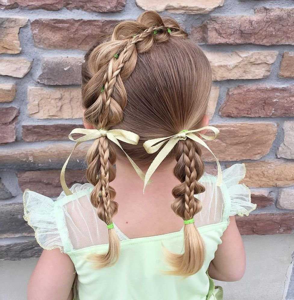 Так же поступаем с остальными прядями. Выходит очень интересная прическа, которая точно понравится маленькой красавице.