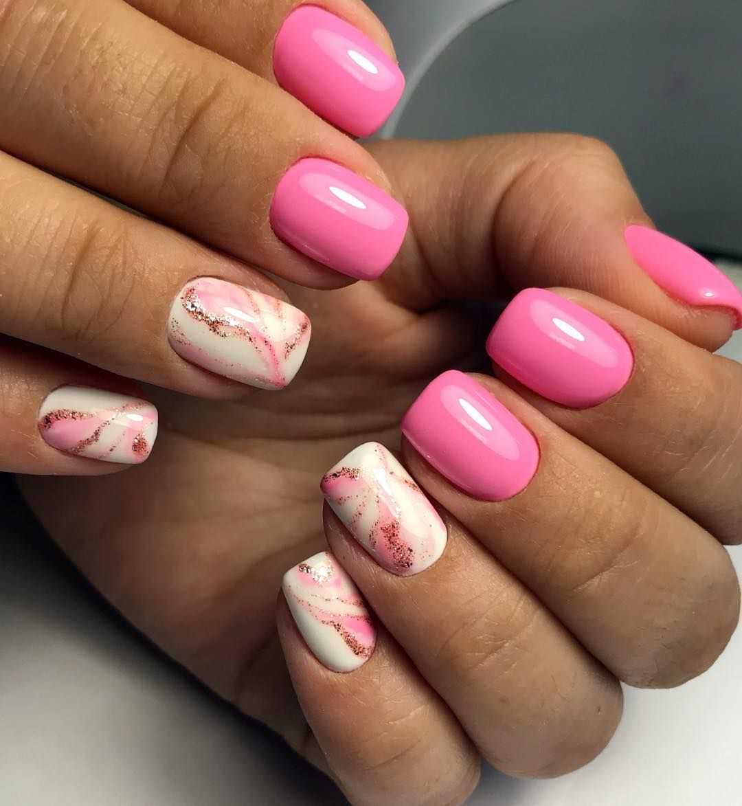 В зависимости от ваших вкусовых предпочтений, будет сделан выбор цвета для нанесения узора. Розовые и белые цвета чаще всего комбинируются в дизайне. Дизайн ногтей с розовыми гель лаками может быть в таких вариантах: