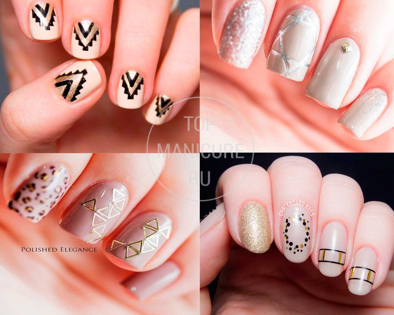 Еще одно роскошное сочетание это бежево-золотой маникюр. Здесь представлены варианты оформления ногтей в таком стиле.