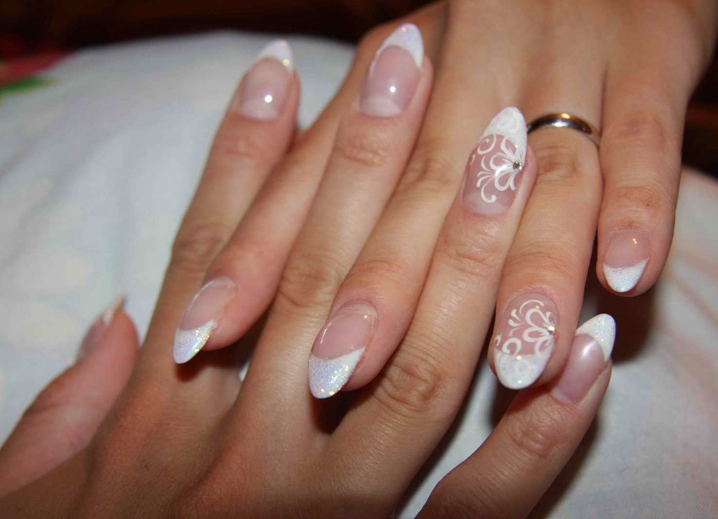 Для свадебного мероприятия лучше остановиться на короткой или средней длине ногтевой пластины. Форма ногтя для свадебного френча миндалевидная или естественно-овальная. Девушкам, предпочитающим длинные ноготки лучше ограничиться слегка заостренным вариантом размером не более 4-6 мм.