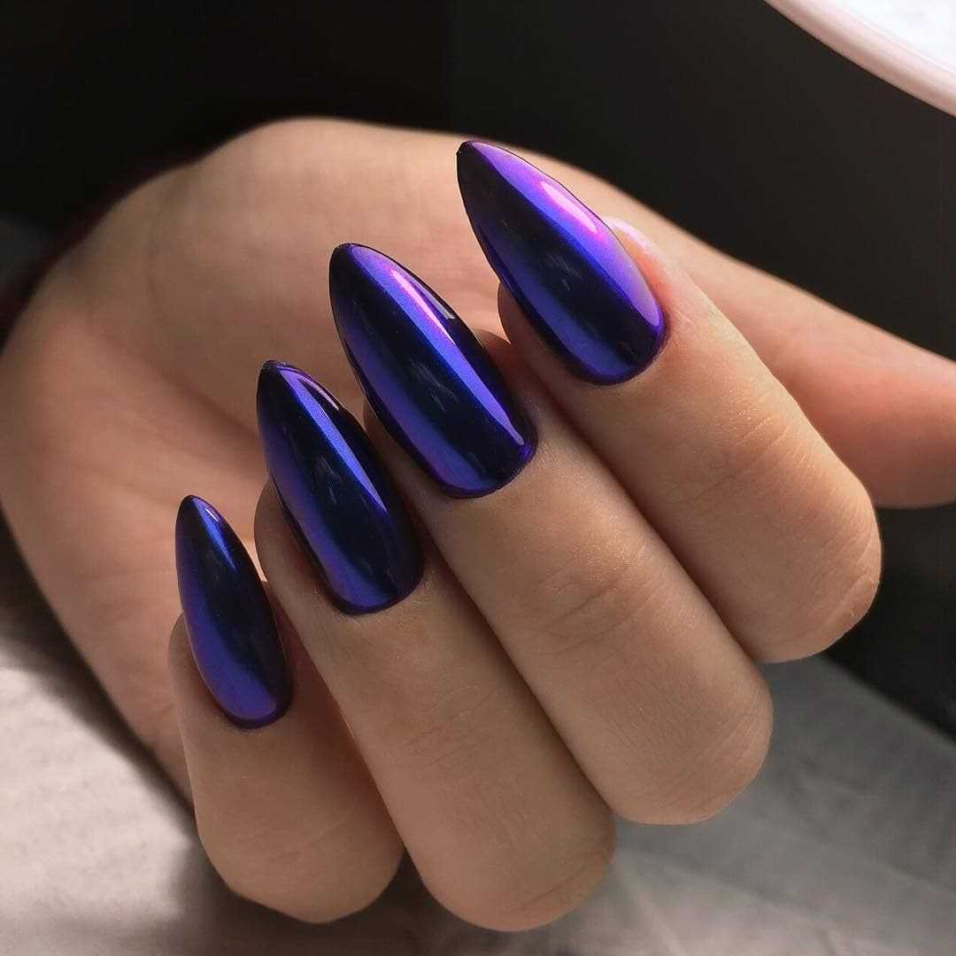 Ногти, выкрашенные в зеркальные тона, всегда привлекают внимание окружающих людей. Но требуют идеальной четкости линий и правильной формы ногтей