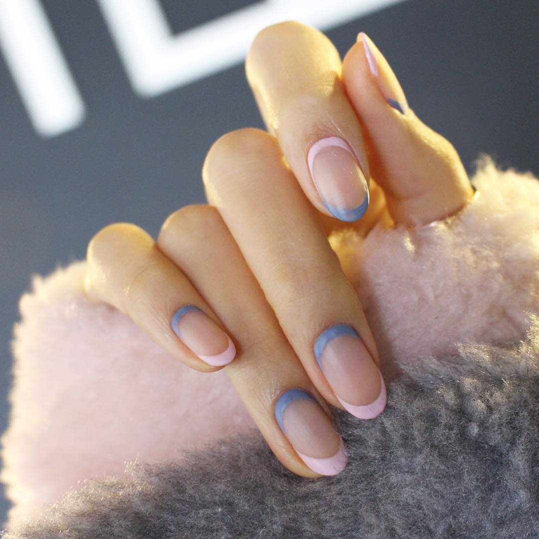 Длинный синий френч: идеи для квадратных, овальных ногтей, формы миндаль