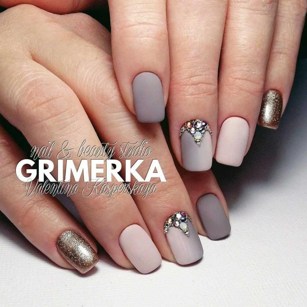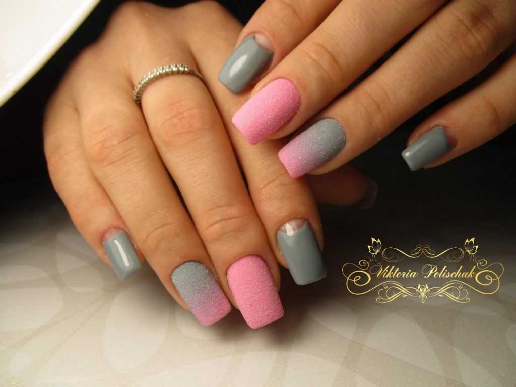 Акцент на фактуру ногтей приобрел популярность после появления гель-лаков с матовым эффектом. Комбинировать их с другими видами покрытия стали многие мастера. Не обошла эта тенденция сочетание серебра и серого.