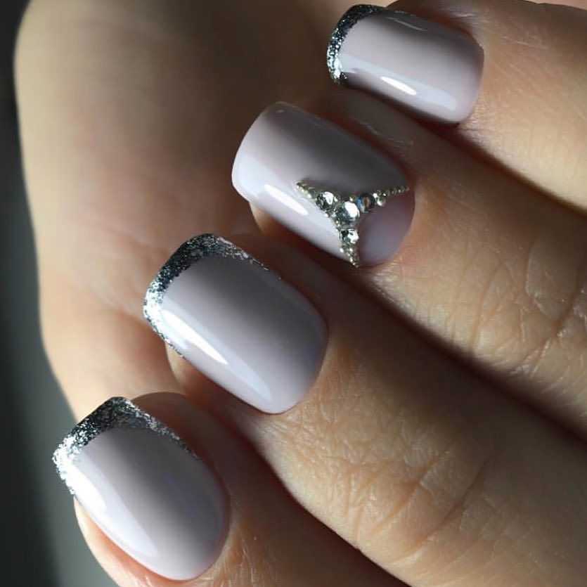 Интересный вариант для ногтей-стилетов или «коготков» — маникюр серебряный с блёстками. Ещё одно необычное решение – отделение кончиков ноготков прямыми линиями или рисование ромбов вместо классической улыбки френча.