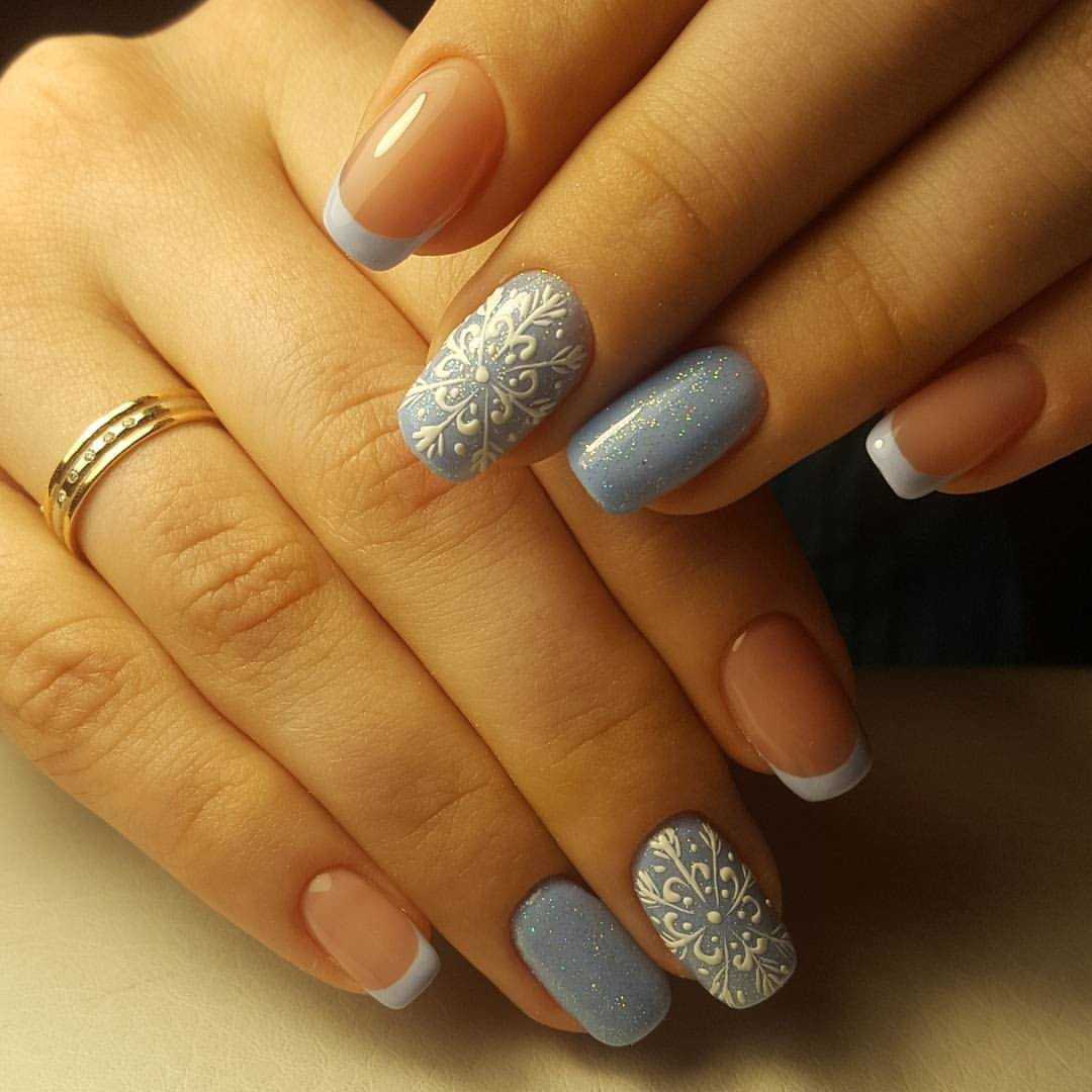 Синий френч с рисунком, стразами или блестками: идеи дизайна