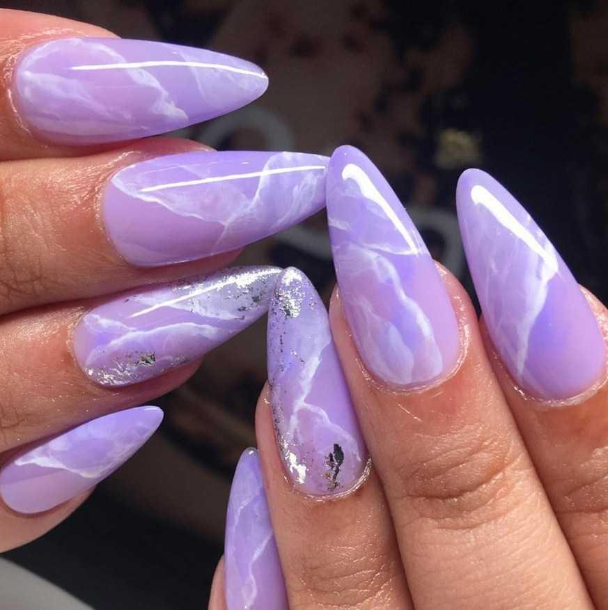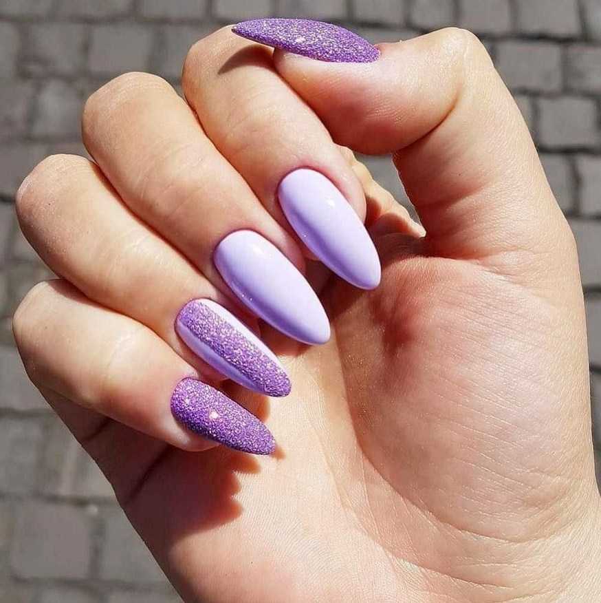 Сиреневый маникюр миндаль